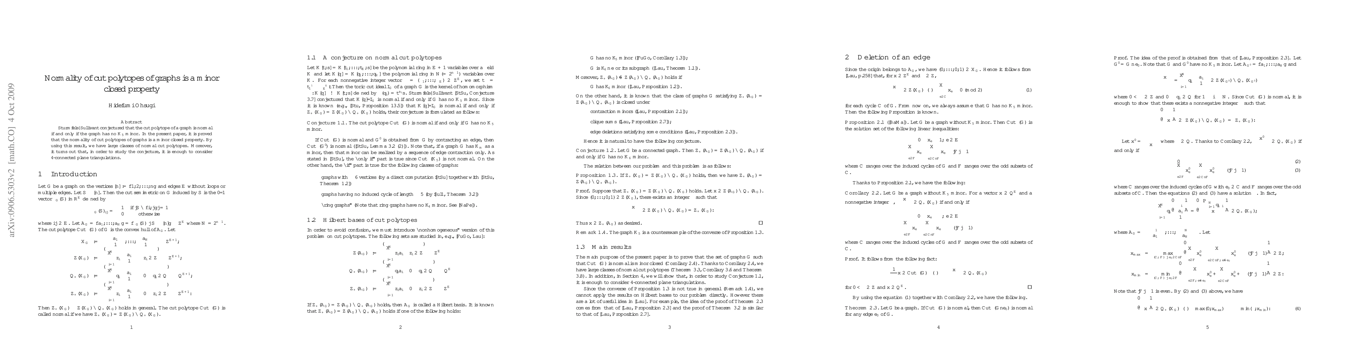 Sturmfels-Sullivant conjectured that the cut polytope of a graph is normal if and only if the graph has no K_5 minor. In the present paper, it is proved that the normality of cut polytopes of graphs is a minor closed property. By using this result, we have large classes of normal cut polytopes. Moreover, it turns out that, in order to study the conjecture, it is enough to consider 4-connected plane triangulations.