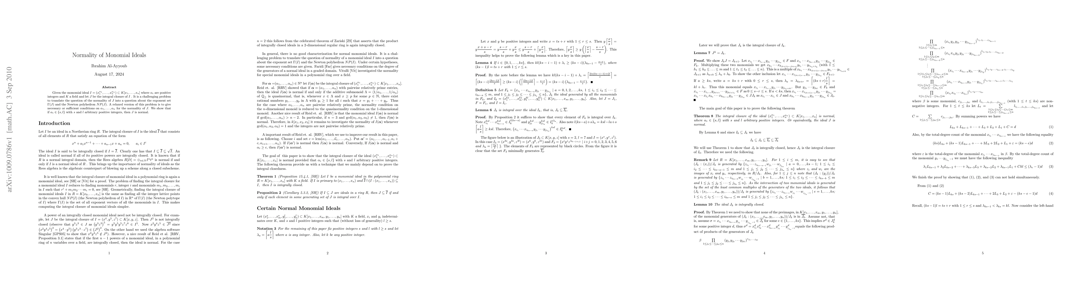 Research shows that if the exponents in a monomial ideal have certain properties (being sums of positive integers), then its integral closure is normal.