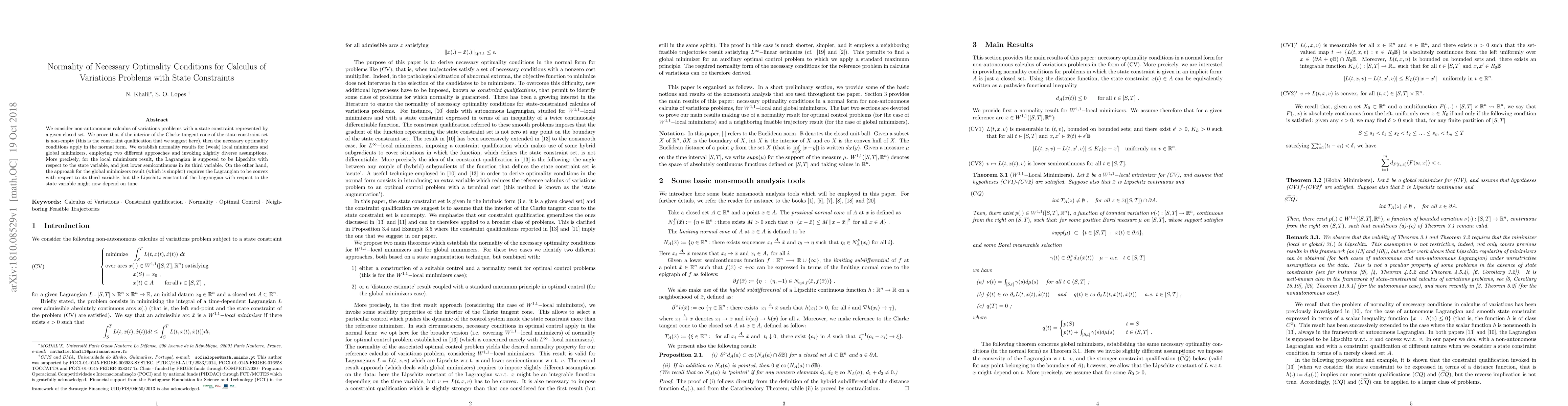 We consider non-autonomous calculus of variations problems with a state constraint represented by a given closed set. We prove that if the interior of the Clarke tangent cone of the state constraint set is non-empty (this is the constraint qualification that we suggest here), then the necessary optimality conditions apply in the normal form. We establish normality results for (weak) local minimizers and global minimizers, employing two different approaches and invoking slightly diverse assumptions. More precisely, for the local minimizers result, the Lagrangian is supposed to be Lipschitz with respect to the state variable, and just lower semicontinuous in its third variable. On the other hand, the approach for the global minimizers result (which is simpler) requires the Lagrangian to be convex with respect to its third variable, but the Lipschitz constant of the Lagrangian with respect to the state variable might now depend on time.