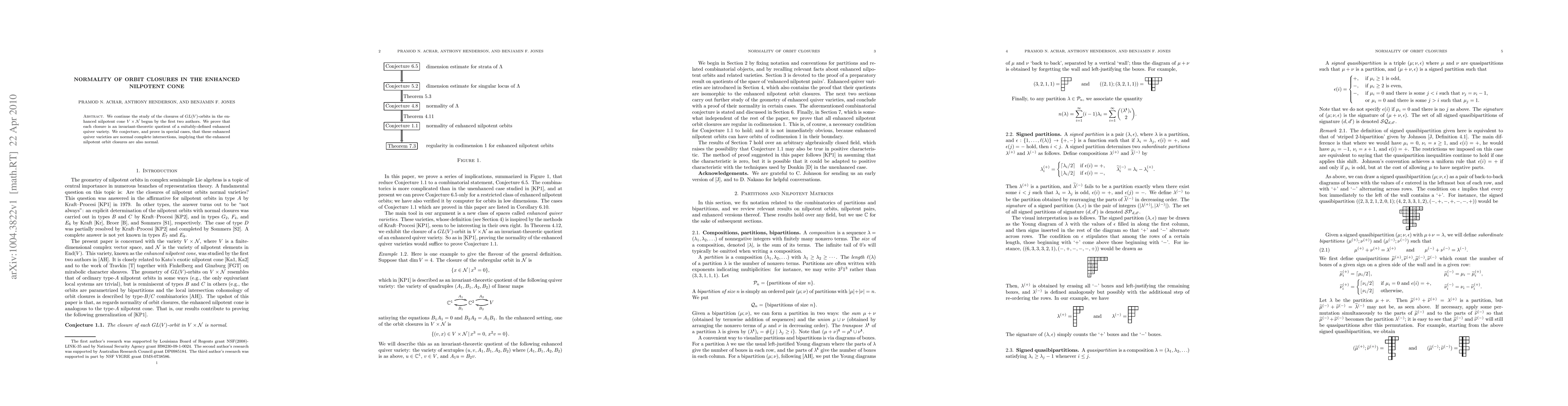 This paper proves that closures of $GL(V)$-orbits in the enhanced nilpotent cone are invariant-theoretic quotients of enhanced quiver varieties, and conjectures, with supporting evidence in special cases, that these varieties are normal complete intersections, thereby implying the normality of the orbit closures.