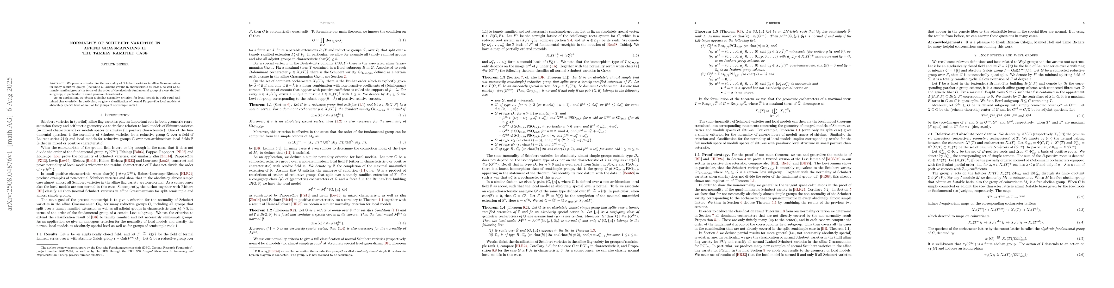 We prove a criterion for the normality of Schubert varieties in affine Grassmannians for many reductive groups (including all adjoint groups in characteristic at least 5 as well as all tamely ramified groups) in terms of the order of the algebraic fundamental group of a certain Levi subgroup, in particular in small positive characteristic. As an application, we obtain a similar normality criterion for local models in both equal and mixed characteristic. In particular, we give a classification of normal Pappas-Zhu local models at absolutely special level as well as for groups of semisimple rank 1.