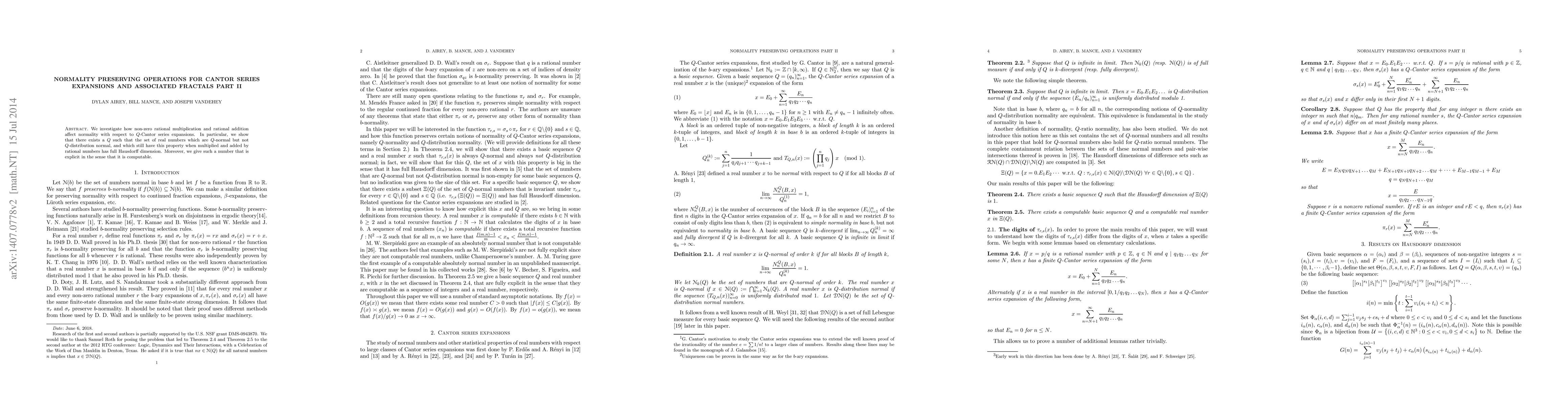 We investigate how non-zero rational multiplication and rational addition affect normality with respect to $Q$-Cantor series expansions. In particular, we show that there exists a $Q$ such that the set of real numbers which are $Q$-normal but not $Q$-distribution normal, and which still have this property when multiplied and added by rational numbers has full Hausdorff dimension. Moreover, we give such a number that is explicit in the sense that it is computable.