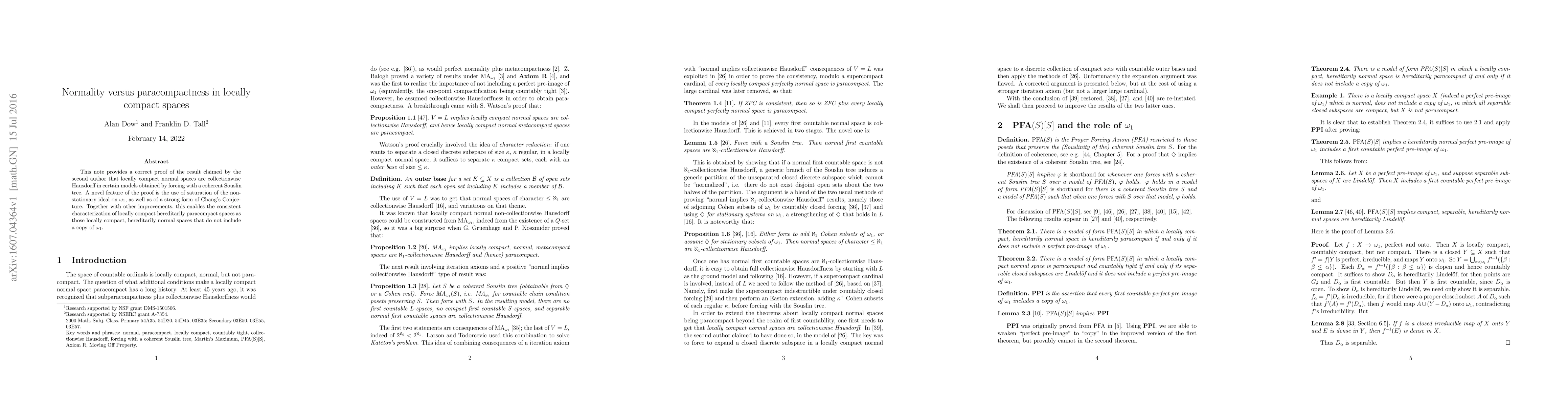 This paper corrects and enhances a previous claim that locally compact normal spaces are collectionwise Hausdorff in specific models created via forcing with a coherent Souslin tree, employing saturation of the non-stationary ideal and a strong form of Chang's Conjecture. It also characterizes locally compact hereditarily paracompact spaces as those locally compact hereditarily normal spaces not containing a copy of ω₁.