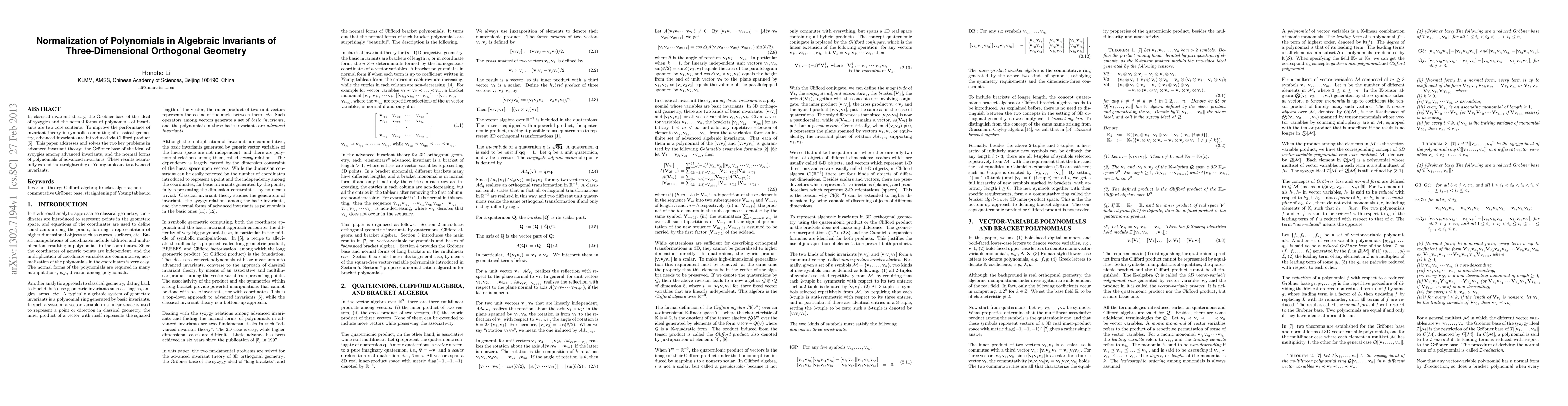 The paper presents a detailed analysis and solution for the Gröbner base of syzygies and normal forms for advanced invariants, extending classical methods to incorporate Clifford product.