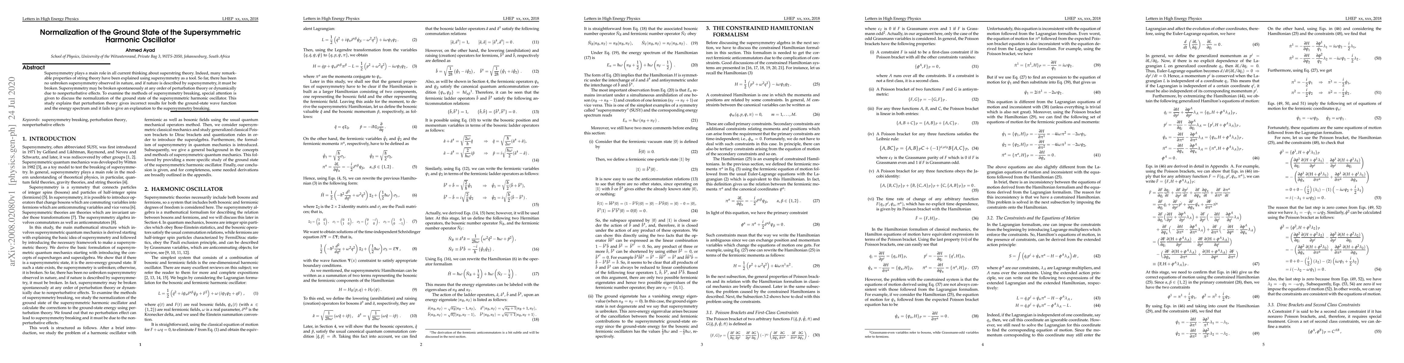 Supersymmetry plays a main role in all current thinking about superstring theory. Indeed, many remarkable properties of string theory have been explained using supersymmetry as a tool. So far, there has been no unbroken supersymmetry observed in nature, and if nature is described by supersymmetry, it must be broken. Supersymmetry may be broken spontaneously at any order of perturbation theory or dynamically due to nonperturbative effects. To examine the methods of supersymmetry breaking, special attention is given to discuss the normalization of the ground state of the supersymmetric harmonic oscillator. This study explains that perturbation theory gives incorrect results for both the ground-state wave function and the energy spectrum and it fails to give an explanation to the supersymmetry breaking.
