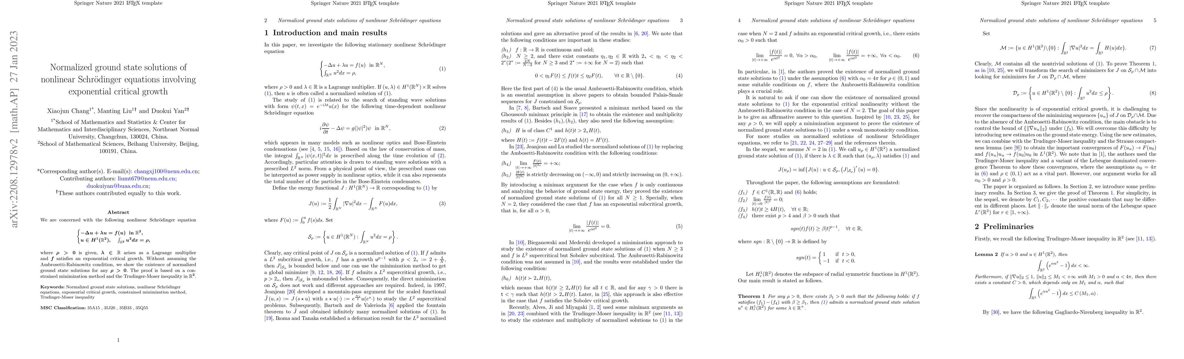 This paper investigates normalized ground state solutions for a nonlinear Schrödinger equation with exponential critical growth in $\mathbb{R}^2$. The authors demonstrate the existence of such solutions for any positive $\rho$ without relying on the Ambrosetti-Rabinowitz condition, using a constrained minimization method and the Trudinger-Moser inequality.