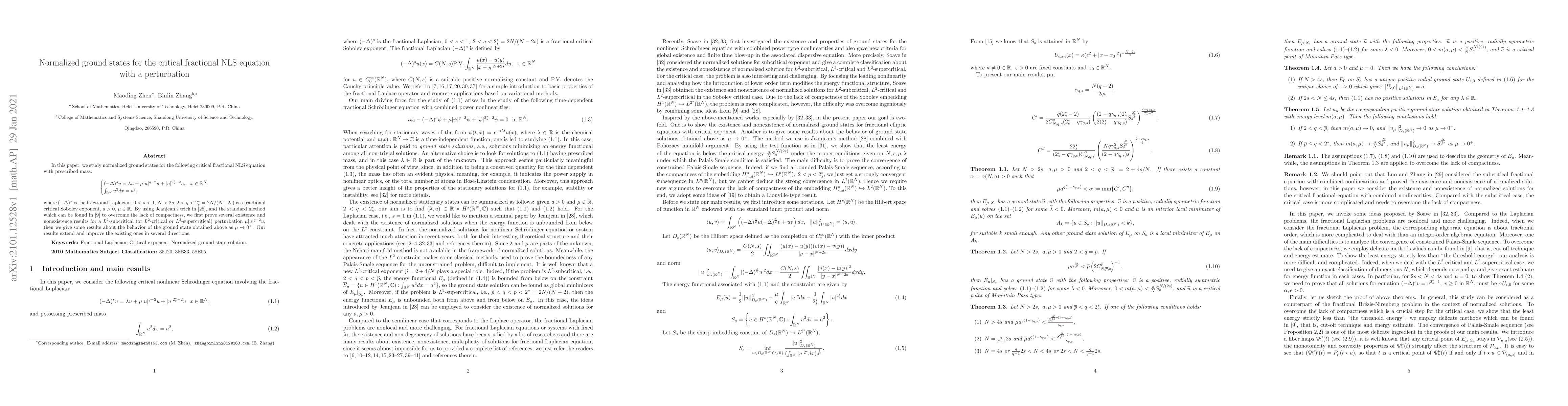 fractional NLS equation with prescribed mass: \begin{equation*} \begin{cases}
