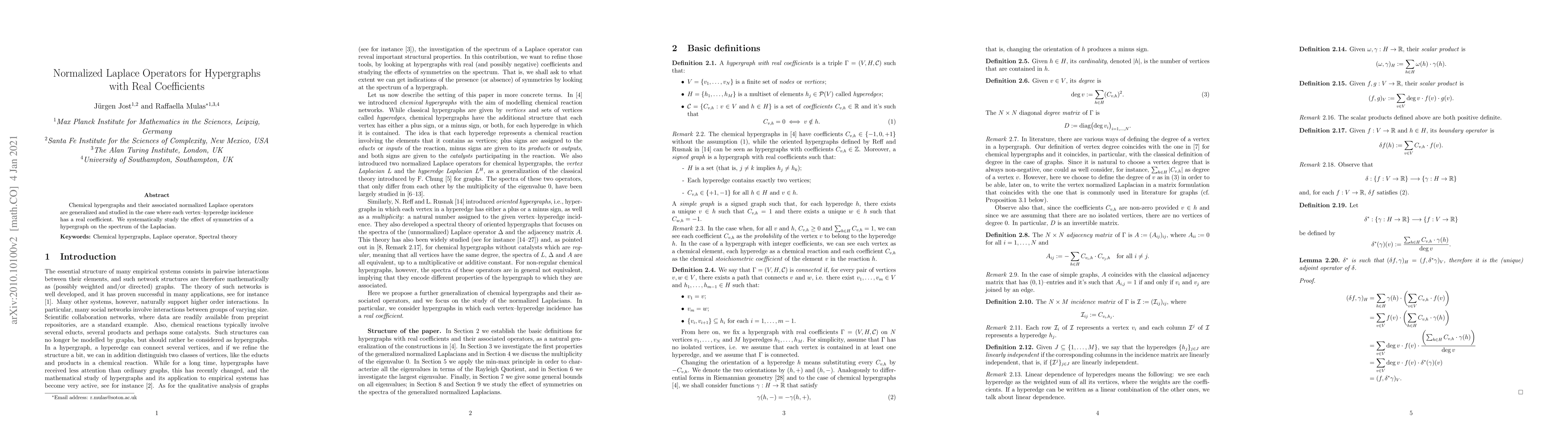 Chemical hypergraphs and their associated normalized Laplace operators are generalized and studied in the case where each vertex--hyperedge incidence has a real coefficient. We systematically study the effect of symmetries of a hypergraph on the spectrum of the Laplacian.
