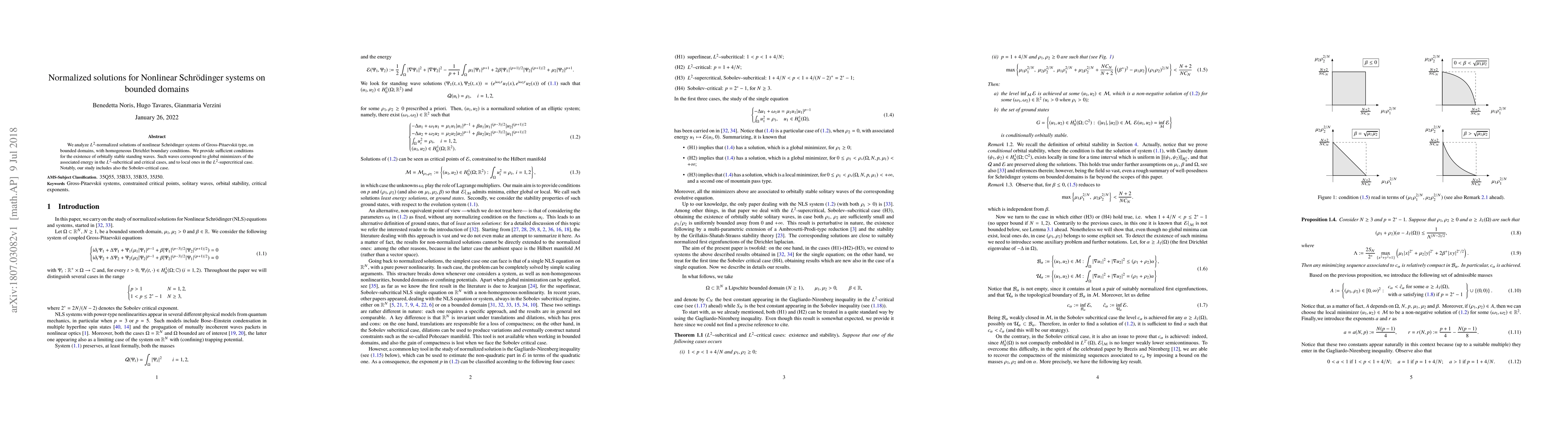 This paper studies solutions to nonlinear Schr"odinger systems on bounded domains, finding conditions for orbitally stable standing waves and their relationship to energy minimization in different cases.