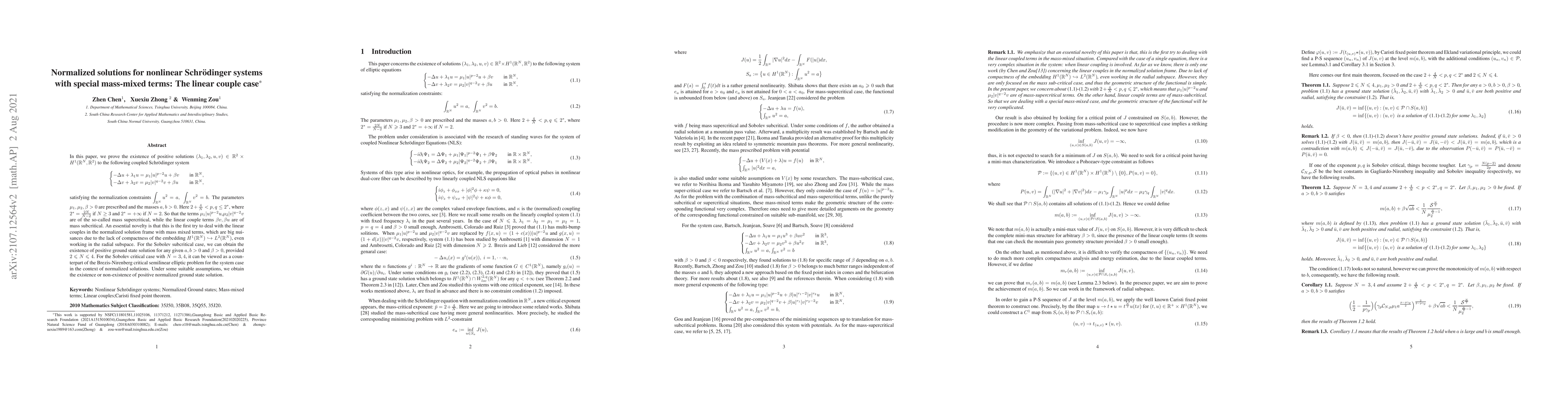 This paper proves the existence of positive solutions to a nonlinear Schr"odinger system with normalized constraints, focusing on linear couple terms and mass mixed terms in a Sobolev framework.