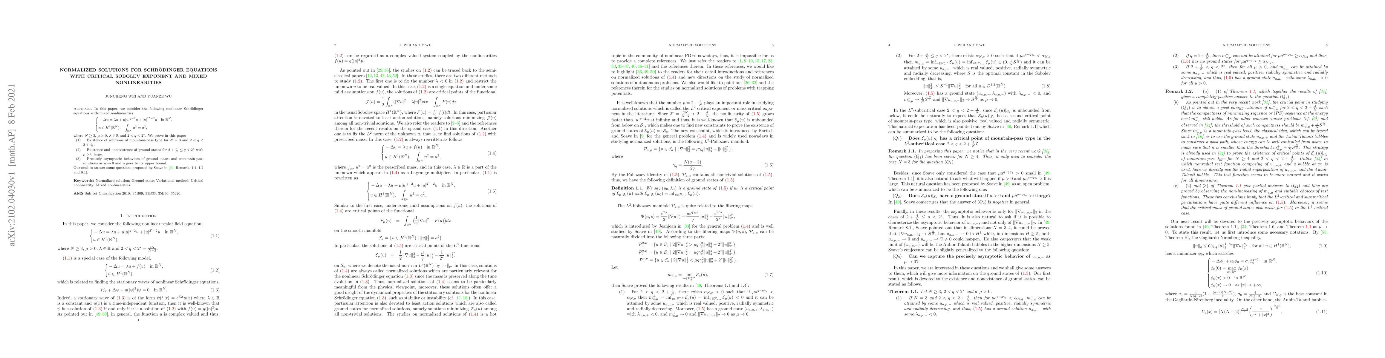 H^1(\bbr^N),\quad\int_{\bbr^N}u^2=a^2, \endaligned\right. \end{eqnarray*} where
