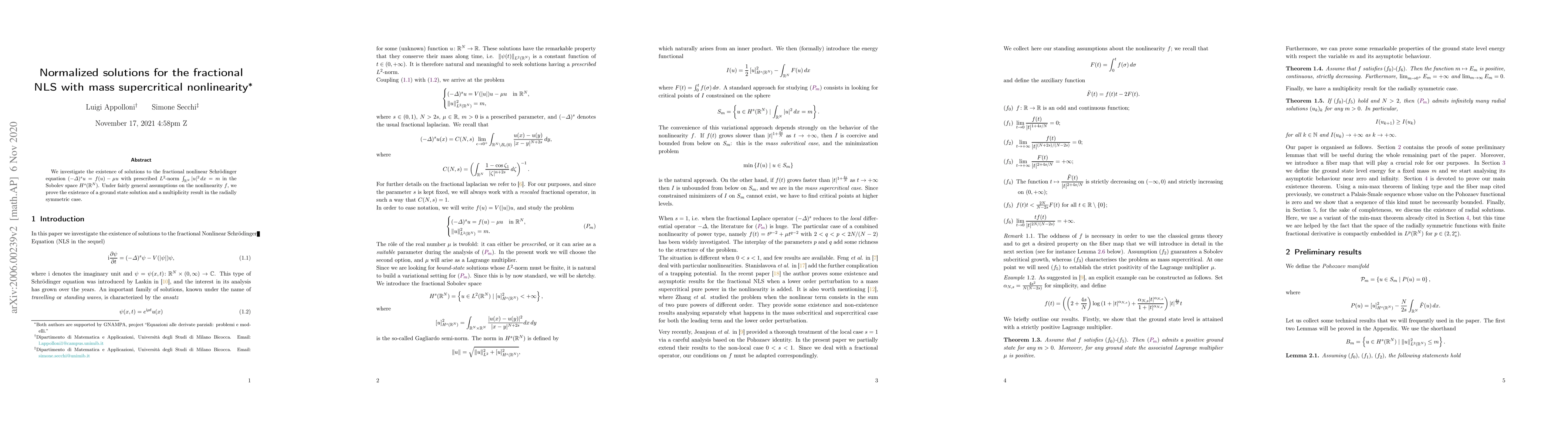 We investigate the existence of solutions to the fractional nonlinear Schr\"{o}dinger equation $(-\Delta)^s u = f(u)$ with prescribed $L^2$-norm $\int_{\mathbb{R}^N} |u|^2 \, dx =m$ in the Sobolev space $H^s(\mathbb{R}^N)$. Under fairly general assumptions on the nonlinearity $f$, we prove the existence of a ground state solution and a multiplicity result in the radially symmetric case.