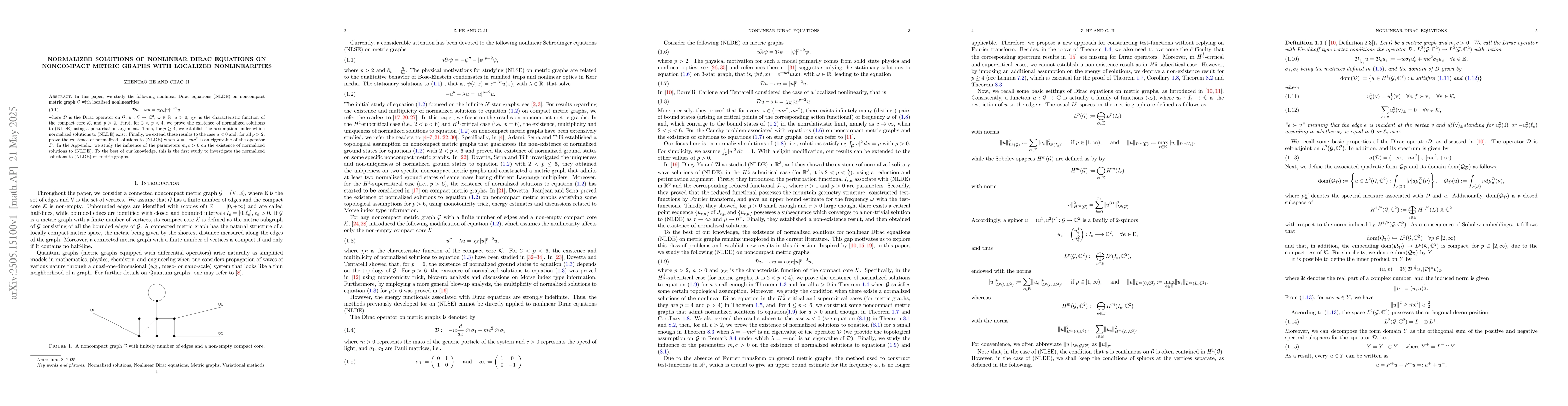 Researchers investigate the existence of normalized solutions to nonlinear Dirac equations on noncompact metric graphs with localized nonlinearities, finding solutions for various cases.