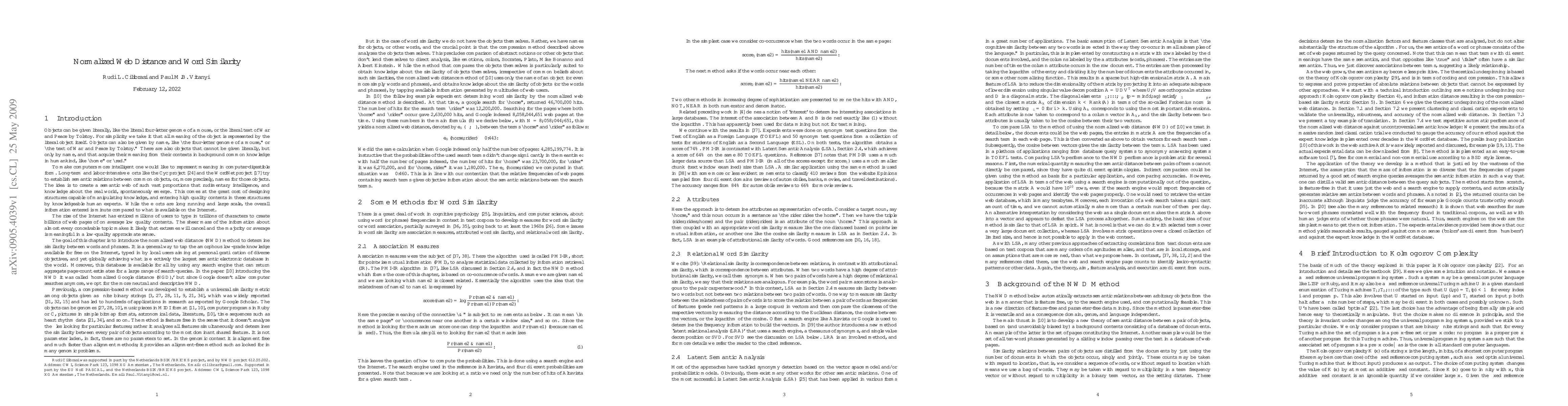 This paper introduces a method to measure word similarity using web distance, which calculates the distance between words based on their online presence. It provides a way to tap into global knowledge available on the internet for free.