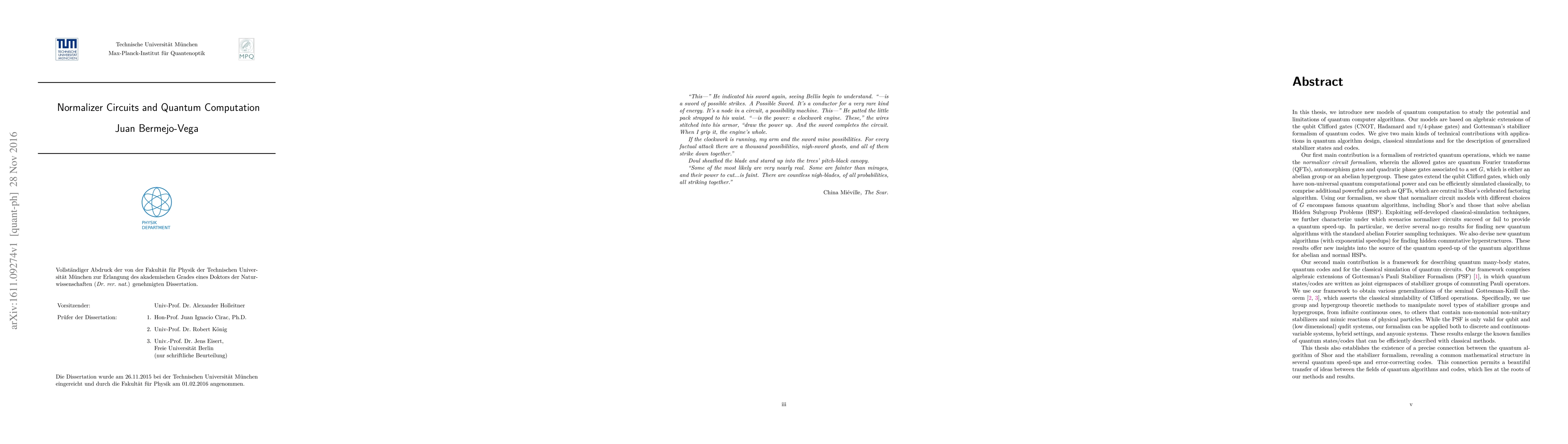(Abridged abstract.) In this thesis we introduce new models of quantum computation to study the emergence of quantum speed-up in quantum computer algorithms. Our first contribution is a formalism of restricted quantum operations, named normalizer circuit formalism, based on algebraic extensions of the qubit Clifford gates (CNOT, Hadamard and $\pi/4$-phase gates): a normalizer circuit consists of quantum Fourier transforms (QFTs), automorphism gates and quadratic phase gates associated to a set $G$, which is either an abelian group or abelian hypergroup. Though Clifford circuits are efficiently classically simulable, we show that normalizer circuit models encompass Shor's celebrated factoring algorithm and the quantum algorithms for abelian Hidden Subgroup Problems. We develop classical-simulation techniques to characterize under which scenarios normalizer circuits provide quantum speed-ups. Finally, we devise new quantum algorithms for finding hidden hyperstructures. The results offer new insights into the source of quantum speed-ups for several algebraic problems. Our second contribution is an algebraic (group- and hypergroup-theoretic) framework for describing quantum many-body states and classically simulating quantum circuits. Our framework extends Gottesman's Pauli Stabilizer Formalism (PSF), wherein quantum states are written as joint eigenspaces of stabilizer groups of commuting Pauli operators: while the PSF is valid for qubit/qudit systems, our formalism can be applied to discrete- and continuous-variable systems, hybrid settings, and anyonic systems. These results enlarge the known families of quantum processes that can be efficiently classically simulated. This thesis also establishes a precise connection between Shor's quantum algorithm and the stabilizer formalism, revealing a common mathematical structure in several quantum speed-ups and error-correcting codes.