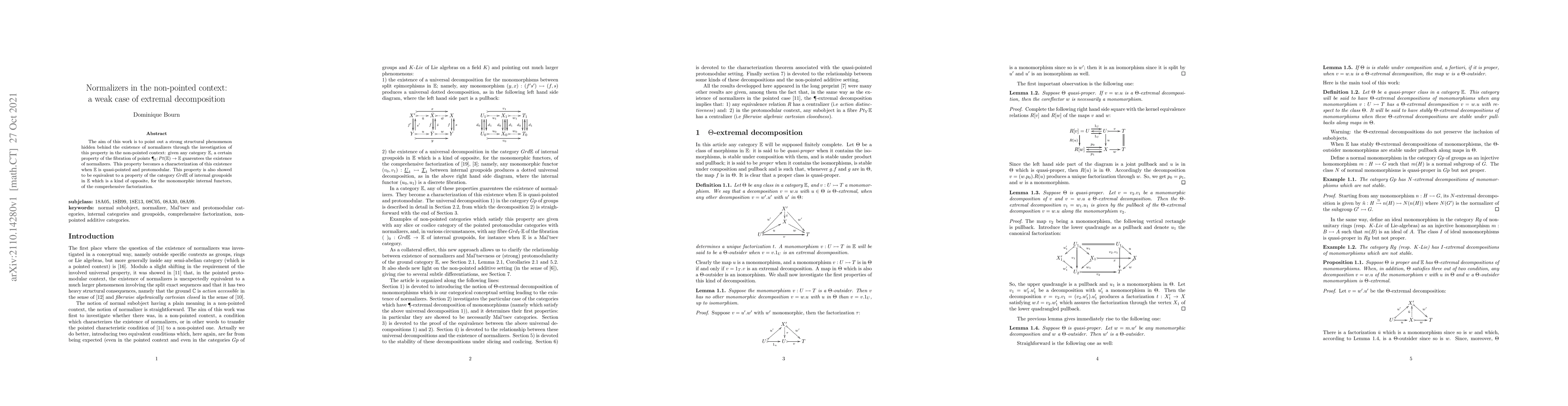 The aim of this work is to point out a strong structural phenomenon hidden behind the existence of normalizers through the investigation of this property in the non-pointed context: given any category E, a certain property of the fibration of points: Pt(E) --> E guarentees the existence of normalizers. This property becomes a characterization of this existence when E is quasi-pointed and protomodular. This property is also showed to be equivalent to a property of the category GrdE of internal groupoids in E which is a kind of opposite, for the monomorphic internal functors, of the comprehensive factorization.