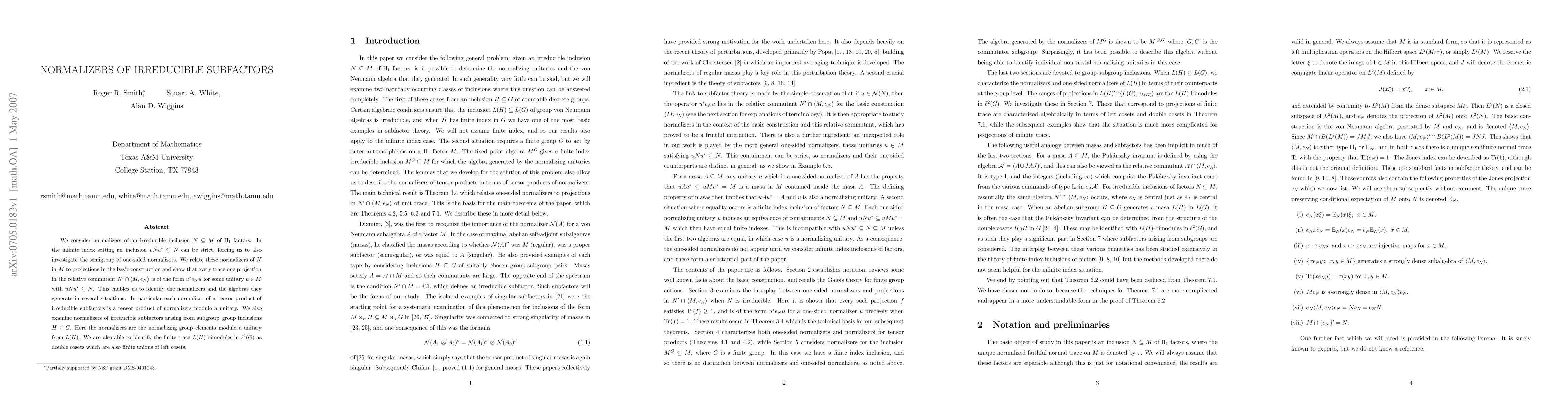 This paper investigates the normalizers of irreducible subfactors within $\mathrm{II}_1$ factors, showing a connection between these normalizers and projections in the basic construction. It identifies normalizers in tensor products and subgroup-group inclusions, relating them to finite trace $L(H)$-bimodules in $\ell^2(G)$ as double cosets.