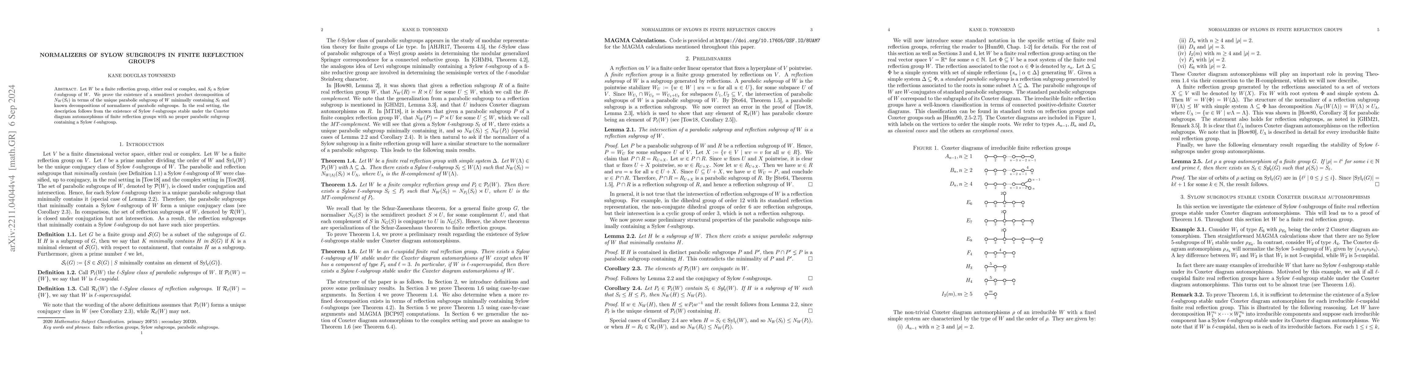 This paper establishes a semidirect product decomposition for the normalizer of a Sylow $\ell$-subgroup in a finite reflection group, leveraging the unique parabolic subgroup containing it and known decompositions of parabolic subgroup normalizers. In the real case, this is supported by the stability of Sylow $\ell$-subgroups under Coxeter diagram automorphisms.