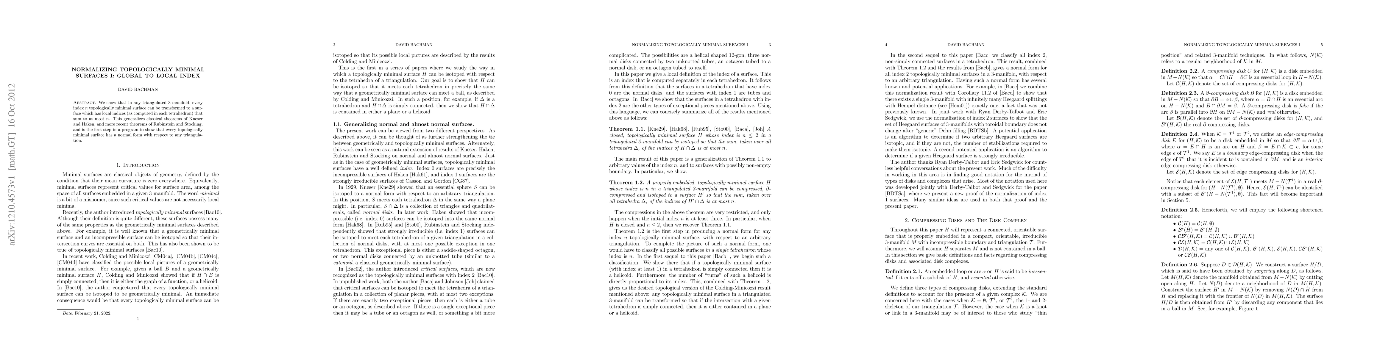 Researchers prove that in 3D manifolds, topologically minimal surfaces can be transformed to have local indices summing to at most n, generalizing previous theorems.