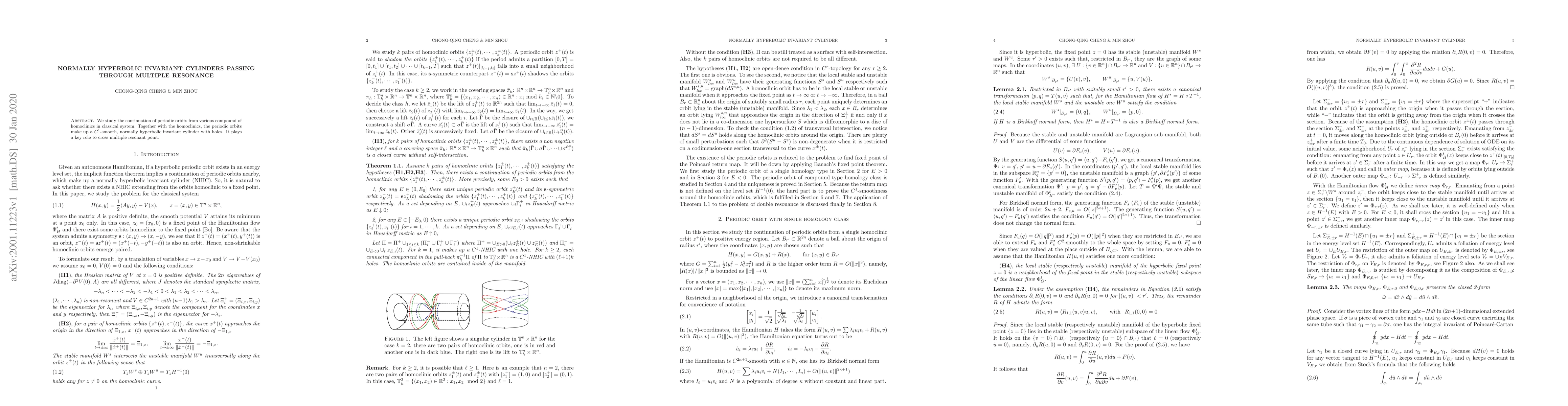 Researchers studied how periodic orbits can cross multiple resonant points in classical systems by focusing on normally hyperbolic invariant cylinders with holes. They found a way to understand the continuation of these orbits under various conditions.
