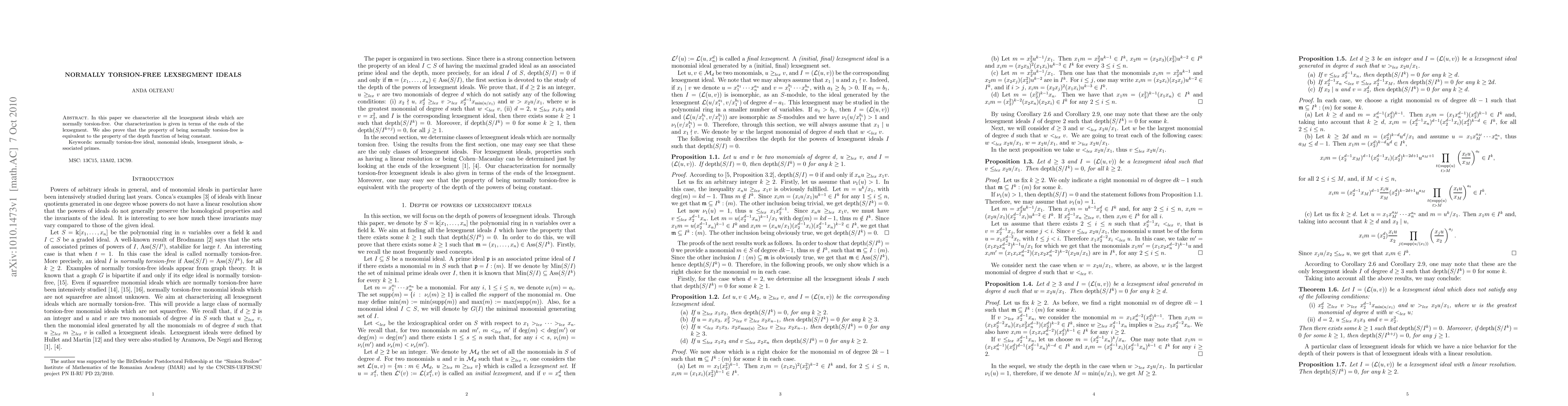This paper characterizes lexsegment ideals that are normally torsion-free in terms of their endpoints and proves that this property is equivalent to the depth function remaining constant.