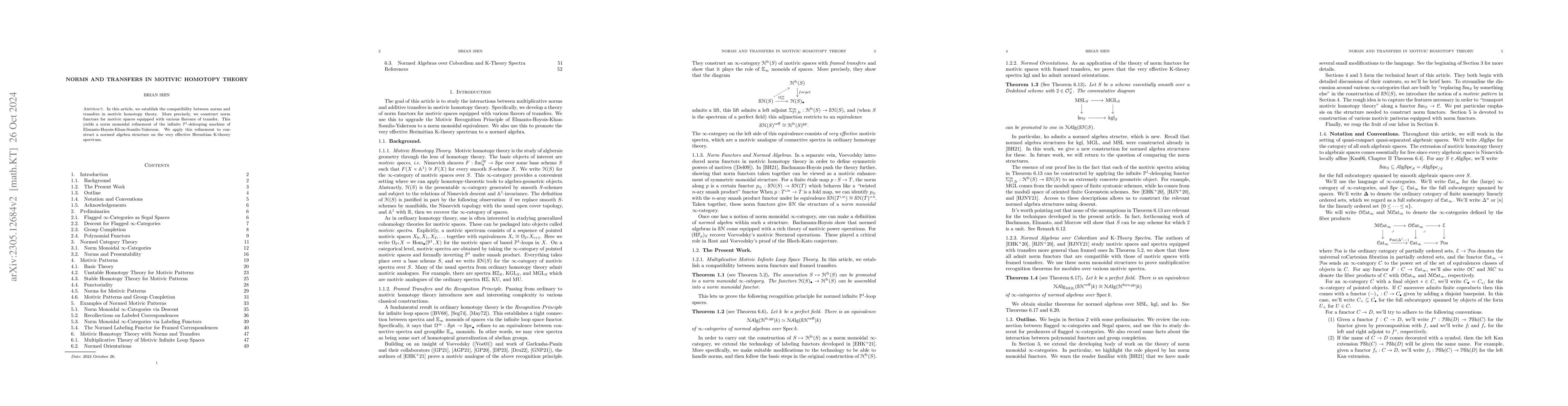 This paper explores norm functors in motivic homotopy theory, demonstrating that the symmetric monoidal structure of framed correspondences can be refined to a norm monoidal structure. It shows compatibility with the Reconstruction Theorem, leading to a recognition principle for normed motivic spectra, and extends similar results to other transfer types like syntomic and oriented Gorenstein.