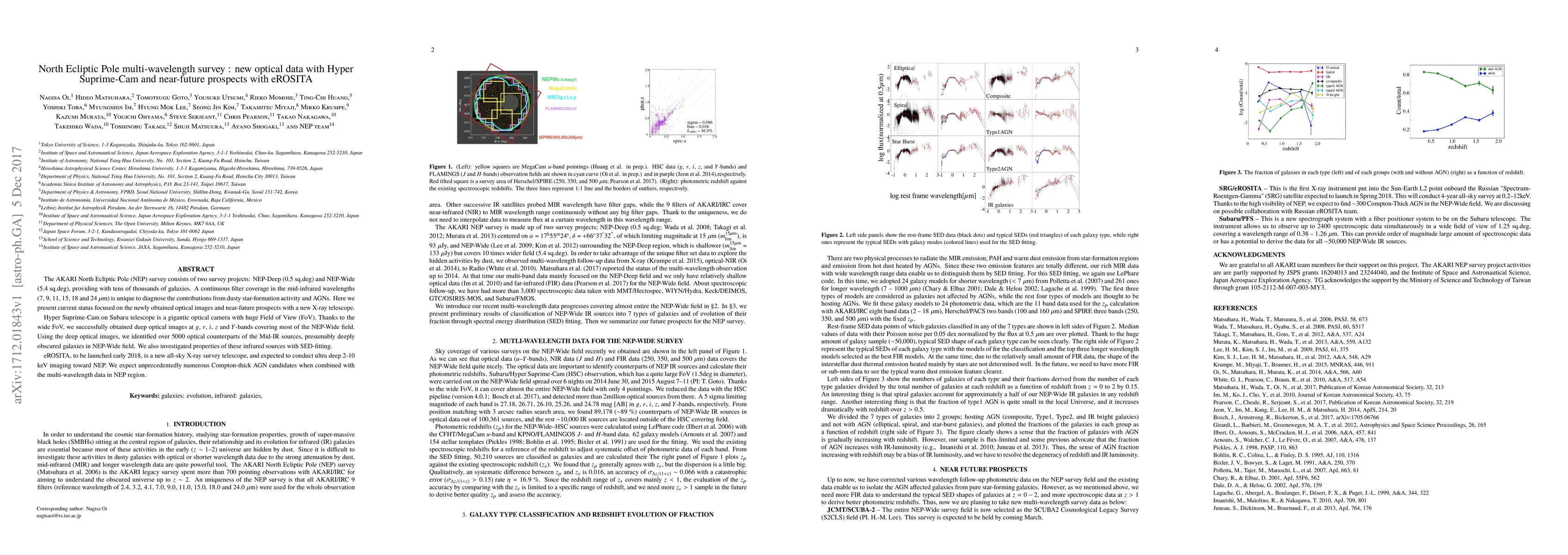 The AKARI North Ecliptic Pole survey includes NEP-Deep and NEP-Wide projects, providing extensive galaxy data and mid-infrared diagnostics. Hyper Suprime-Cam on the Subaru telescope has captured deep optical images, identifying over 5000 counterparts of mid-IR sources, while eROSITA, launching in 2018, promises to reveal numerous Compton-thick AGN candidates through deep X-ray imaging.