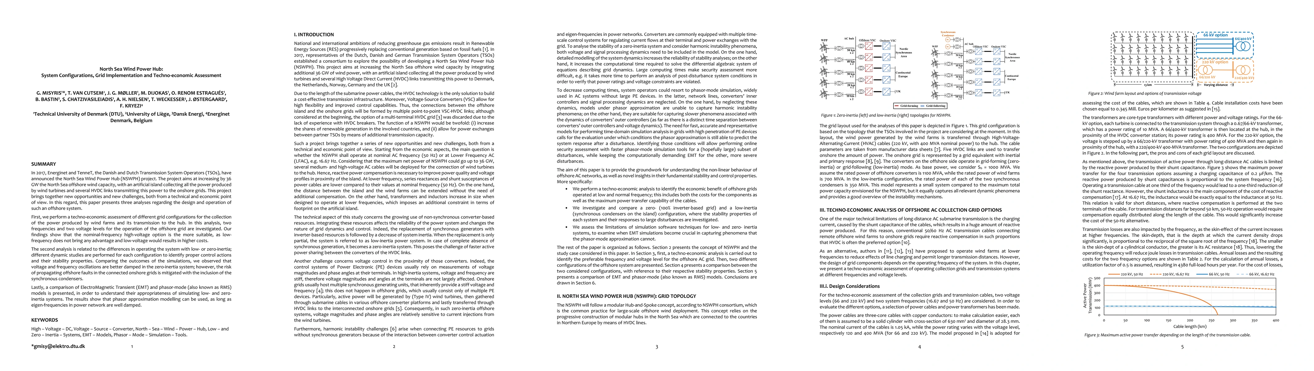 This paper evaluates the North Sea Wind Power Hub project, assessing three key aspects: optimal grid configurations for offshore wind power collection and transmission, dynamic stability in low-inertia systems, and the suitability of EMT vs. phasor-mode models for simulations. The study concludes that the nominal-frequency high-voltage configuration is most cost-effective, while zero-inertia systems show better damping but require additional controls to mitigate fault propagation risks.