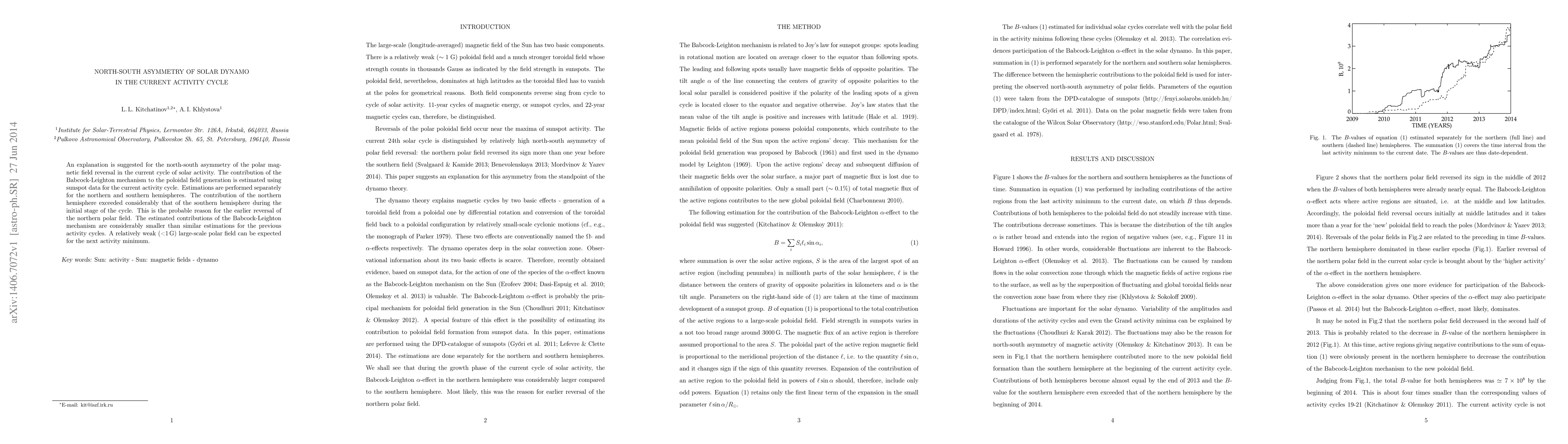 An explanation is suggested for the north-south asymmetry of the polar magnetic field reversal in the current cycle of solar activity. The contribution of the Babcock-Leighton mechanism to the poloidal field generation is estimated using sunspot data for the current activity cycle. Estimations are performed separately for the northern and southern hemispheres. The contribution of the northern hemisphere exceeded considerably that of the southern hemisphere during the initial stage of the cycle. This is the probable reason for the earlier reversal of the northern polar field. The estimated contributions of the Babcock-Leighton mechanism are considerably smaller than similar estimations for the previous activity cycles. A relatively weak (<1G) large-scale polar field can be expected for the next activity minimum.