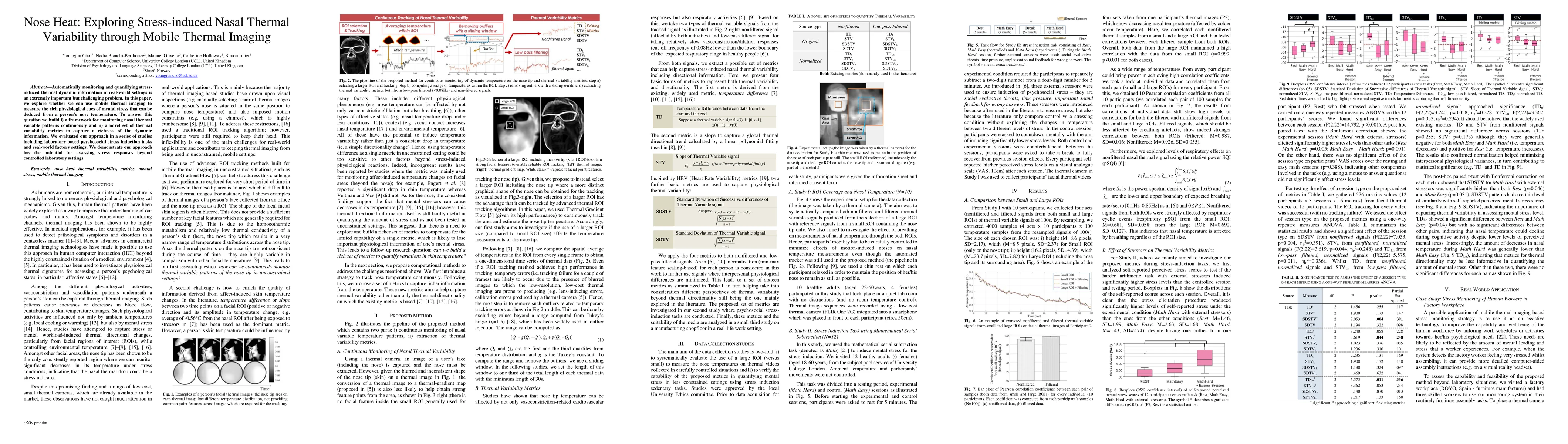 Automatically monitoring and quantifying stress-induced thermal dynamic information in real-world settings is an extremely important but challenging problem. In this paper, we explore whether we can use mobile thermal imaging to measure the rich physiological cues of mental stress that can be deduced from a person's nose temperature. To answer this question we build i) a framework for monitoring nasal thermal variable patterns continuously and ii) a novel set of thermal variability metrics to capture a richness of the dynamic information. We evaluated our approach in a series of studies including laboratory-based psychosocial stress-induction tasks and real-world factory settings. We demonstrate our approach has the potential for assessing stress responses beyond controlled laboratory settings.
