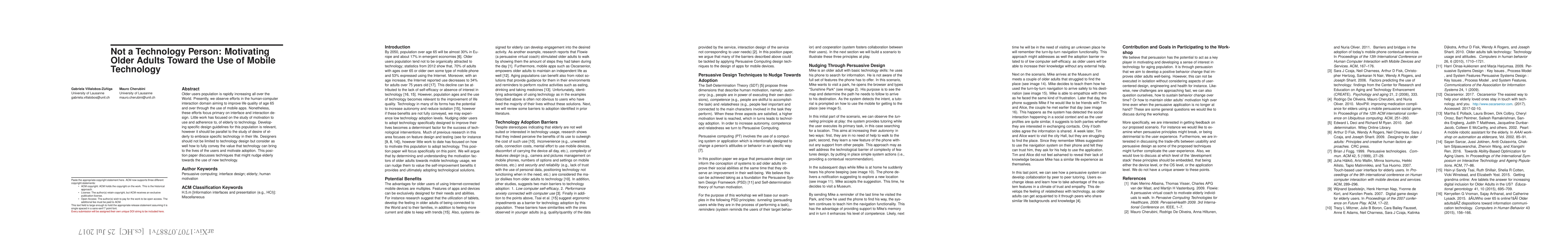 Older users population is rapidly increasing all over the World. Presently, we observe efforts in the human-computer interaction domain aiming to improve life quality of age 65 and over through the use of mobile apps. Nonetheless, these efforts focus primary on interface and interaction de- sign. Little work has focused on the study of motivation to use and adherence to, of elderly to technology. Developing specific design guidelines for this population is relevant, however it should be parallel to the study of desire of elderly to embrace specific technology in their life. Designers should not be limited to technology design but consider as well how to fully convey the value that technology can bring to the lives of the users and motivate adoption. This position paper discusses techniques that might nudge elderly towards the use of new technology.