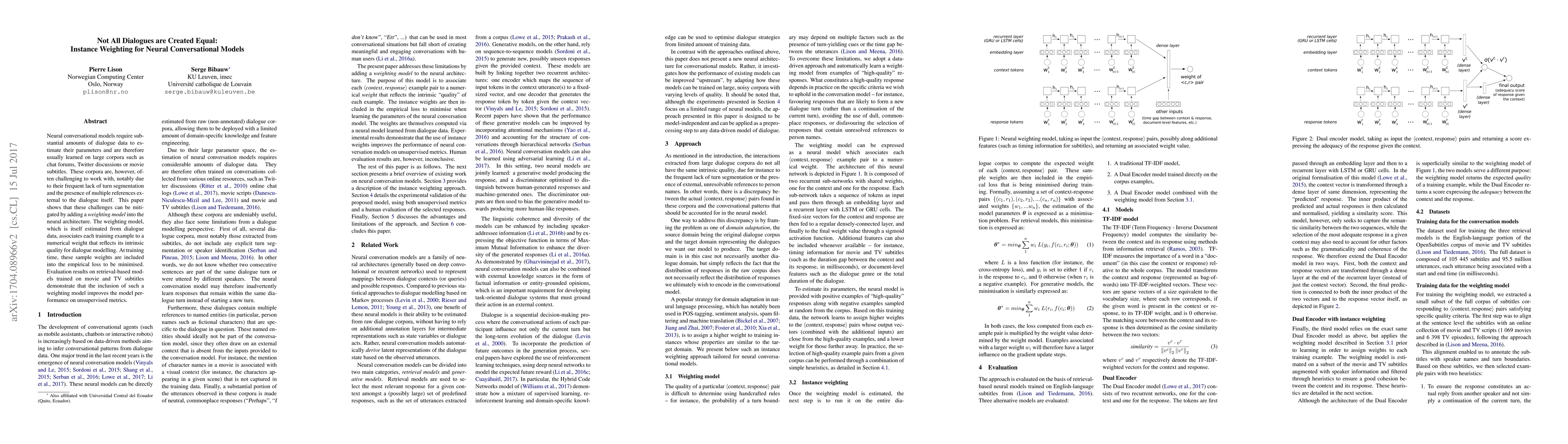 This paper introduces an instance weighting model to improve neural conversational models, addressing challenges of dialogue data quality, which enhances performance on unsupervised metrics.