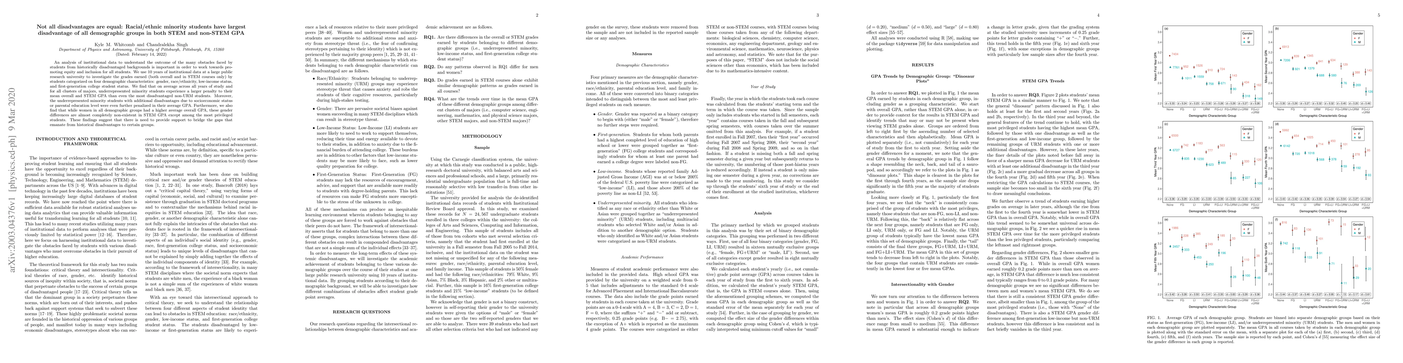 This study analyzes 10 years of data from a large public university, revealing that racial/ethnic minority students face the largest GPA disadvantage across all demographic groups, especially in STEM courses. Additional socioeconomic disadvantages further exacerbate this penalty, highlighting the need for targeted support to promote equity.