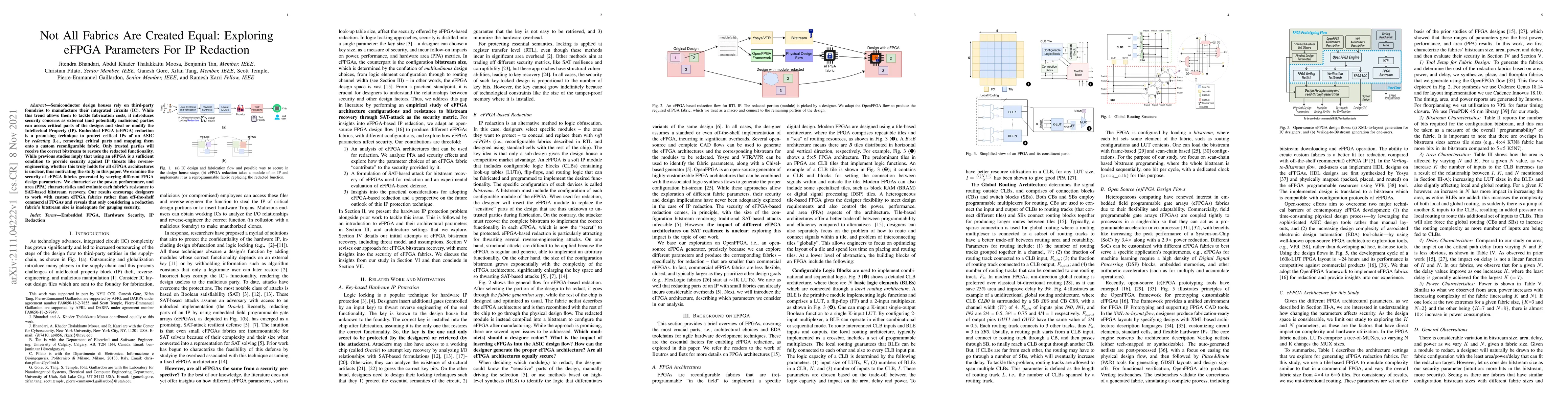 Researchers investigate the security of eFPGA fabrics created with varying FPGA design parameters to protect against IP theft and reverse-engineering, finding that only custom fabrics offer adequate security.