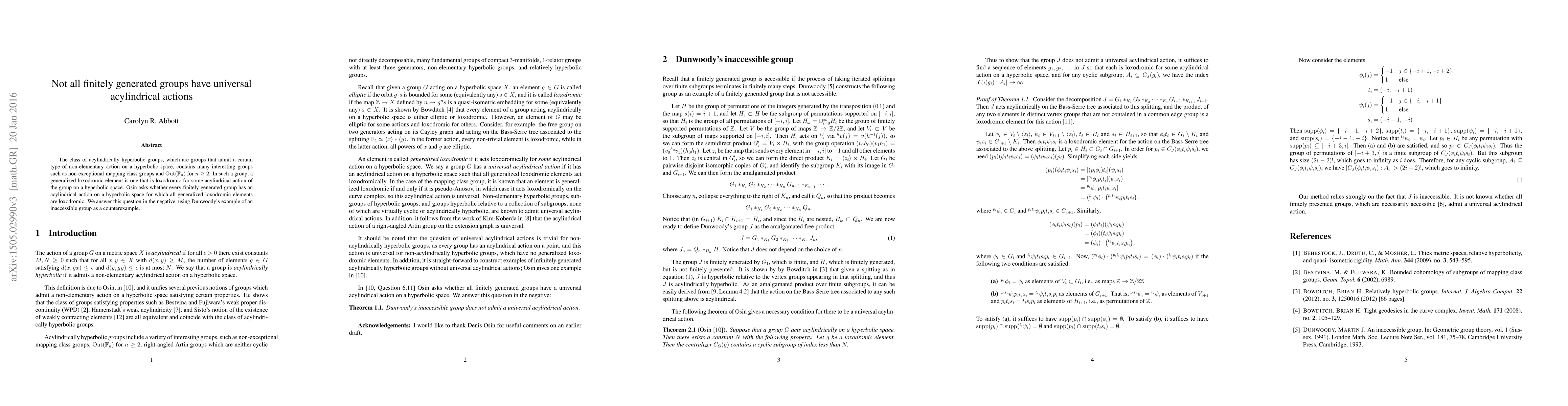 The class of acylindrically hyperbolic groups, which are groups that admit a certain type of non-elementary action on a hyperbolic space, contains many interesting groups such as non-exceptional mapping class groups and $\operatorname{Out}(\mathbb F_n)$ for $n\geq 2$. In such a group, a generalized loxodromic element is one that is loxodromic for some acylindrical action of the group on a hyperbolic space. Osin asks whether every finitely generated group has an acylindrical action on a hyperbolic space for which all generalized loxodromic elements are loxodromic. We answer this question in the negative, using Dunwoody's example of an inaccessible group as a counterexample.