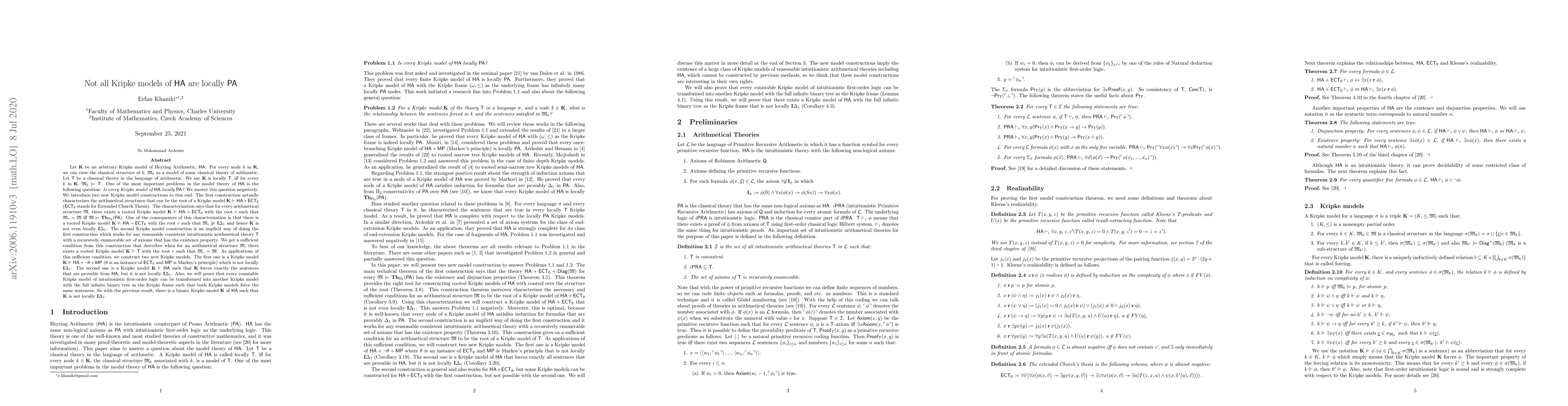 Let ${\bf K}$ be an arbitrary Kripke model of Heyting Arithmetic, ${\sf HA}$. For every node $k$ in ${\bf K}$, we can view the classical structure of $k$, ${\mathfrak M}_k$ as a model of some classical theory of arithmetic. Let ${\sf T}$ be a classical theory in the language of arithmetic. We say ${\bf K}$ is locally ${\sf T}$, iff for every $k$ in ${\bf K}$, ${\mathfrak M}_k\models{\sf T}$. One of the most important problems in the model theory of ${\sf HA}$ is the following question: {\it Is every Kripke model of ${\sf HA}$ locally ${\sf PA}$?} We answer this question negatively. We introduce two new Kripke model constructions to this end. The first construction actually characterizes the arithmetical structures that can be the root of a Kripke model ${\bf K}\Vdash{\sf HA}+{\sf ECT_0}$ (${\sf ECT_0}$ stands for Extended Church Thesis). The characterization says that for every arithmetical structure ${\mathfrak M}$, there exists a rooted Kripke model ${\bf K}\Vdash{\sf HA}+{\sf ECT_0}$ with the root $r$ such that ${\mathfrak M}_r={\mathfrak M}$ iff ${\mathfrak M}\models{\bf Th}_{\Pi_2}({\sf PA})$. One of the consequences of this characterization is that there is a rooted Kripke model ${\bf K}\Vdash{\sf HA}+{\sf ECT_0}$ with the root $r$ such that ${\mathfrak M}_r\not\models{\bf I}\Delta_1$ and hence ${\bf K}$ is not even locally ${\bf I}\Delta_1$. The second Kripke model construction is an implicit way of doing the first construction which works for any reasonable consistent intuitionistic arithmetical theory ${\sf T}$ with a recursively enumerable set of axioms that has the existence property. We get a sufficient condition from this construction that describes when for an arithmetical structure ${\mathfrak M}$, there exists a rooted Kripke model ${\bf K}\Vdash {\sf T}$ with the root $r$ such that ${\mathfrak M}_r={\mathfrak M}$.