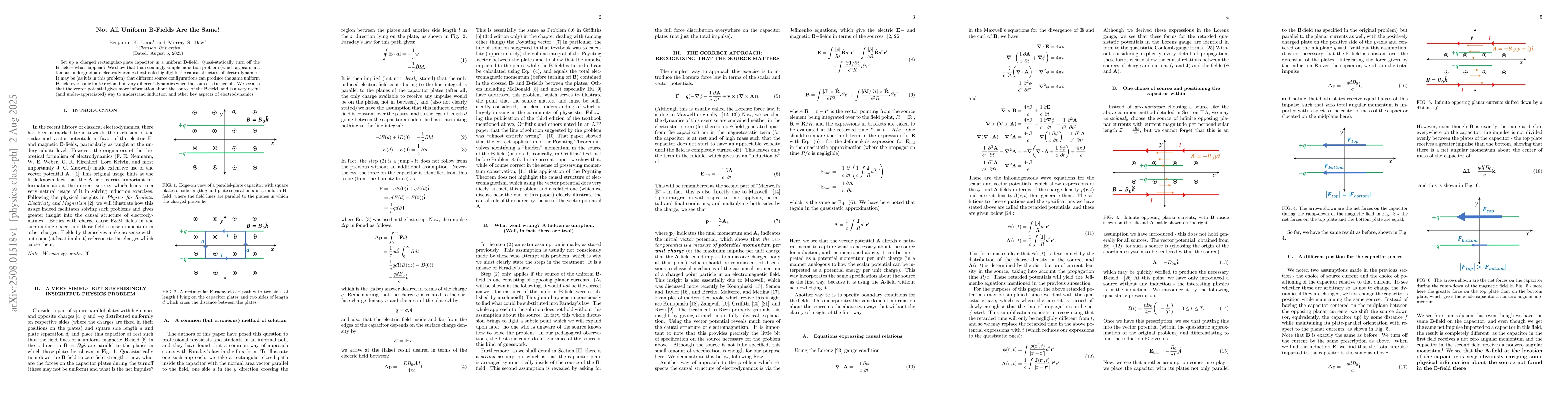 Set up a charged rectangular-plate capacitor in a uniform $\mathbf{B}$-field. Quasi-statically turn off the $\mathbf{B}$-field - what happens? We show that this seemingly simple induction problem (which appears in a famous undergraduate electrodynamics textbook) highlights the causal structure of electrodynamics. It may be (as it is in this problem) that different source configurations can produce the same uniform $\mathbf{B}$-field over some finite region, but very different dynamics when the source is turned off. We see also that the vector potential gives more information about the source of the $\mathbf{B}$-field, and is a very useful (and under-appreciated) way to understand induction and other key aspects of electrodynamics.