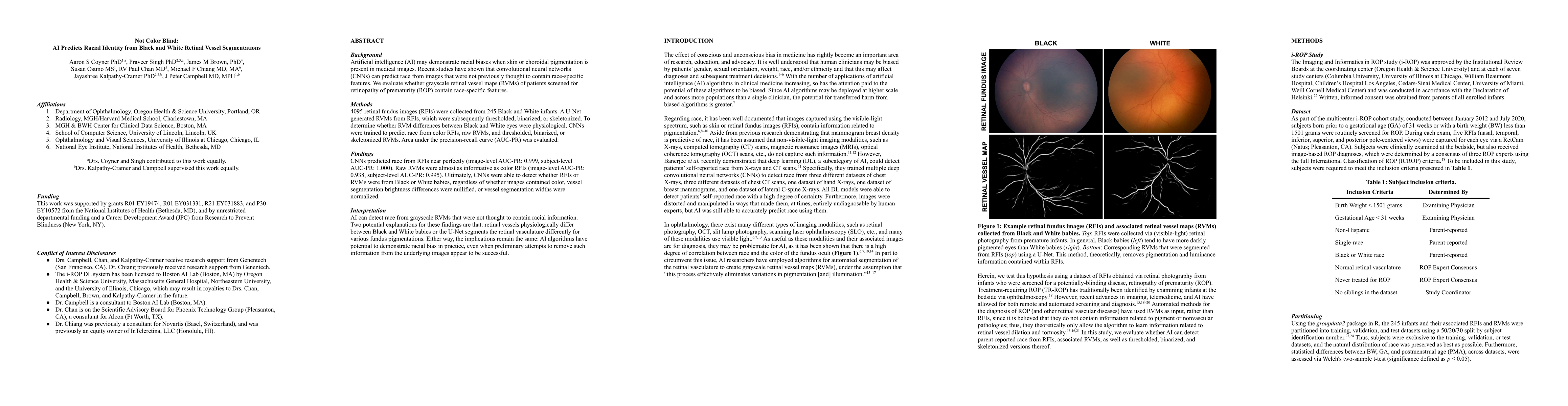 AI can predict racial identity from grayscale retinal vessel maps with high accuracy, suggesting that racial bias may exist even in seemingly race-neutral medical images.