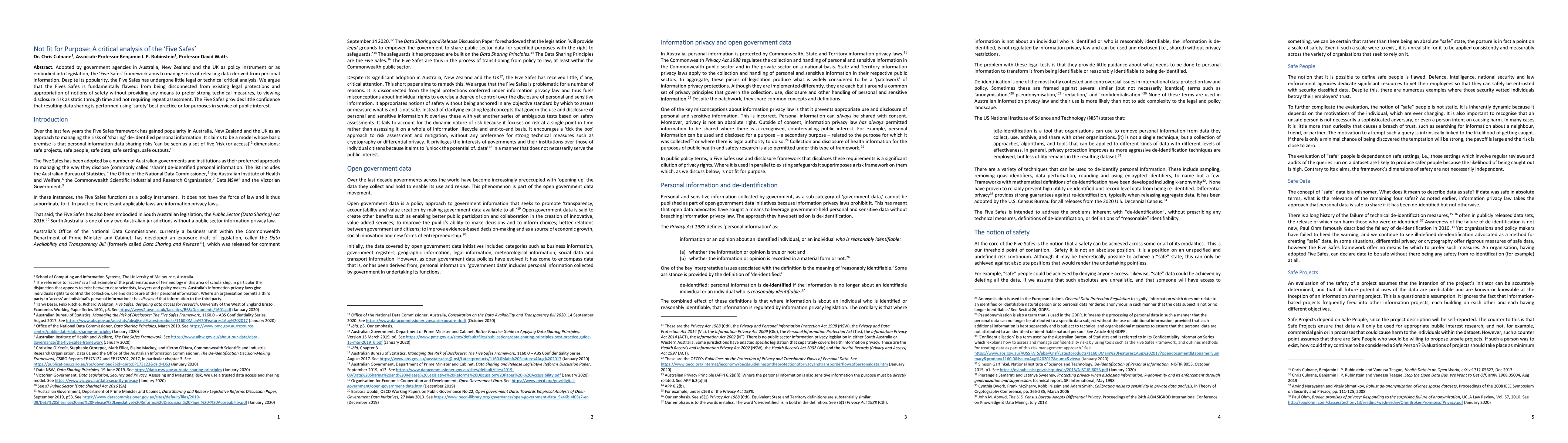Adopted by government agencies in Australia, New Zealand and the UK as policy instrument or as embodied into legislation, the 'Five Safes' framework aims to manage risks of releasing data derived from personal information. Despite its popularity, the Five Safes has undergone little legal or technical critical analysis. We argue that the Fives Safes is fundamentally flawed: from being disconnected from existing legal protections and appropriation of notions of safety without providing any means to prefer strong technical measures, to viewing disclosure risk as static through time and not requiring repeat assessment. The Five Safes provides little confidence that resulting data sharing is performed using 'safety' best practice or for purposes in service of public interest.