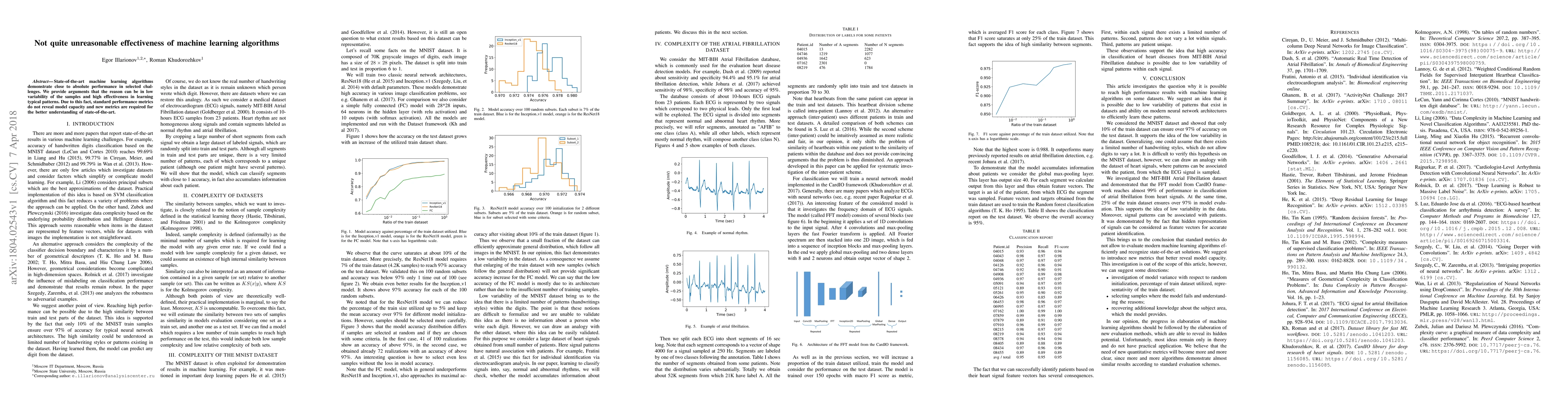 State-of-the-art machine learning algorithms demonstrate close to absolute performance in selected challenges. We provide arguments that the reason can be in low variability of the samples and high effectiveness in learning typical patterns. Due to this fact, standard performance metrics do not reveal model capacity and new metrics are required for the better understanding of state-of-the-art.
