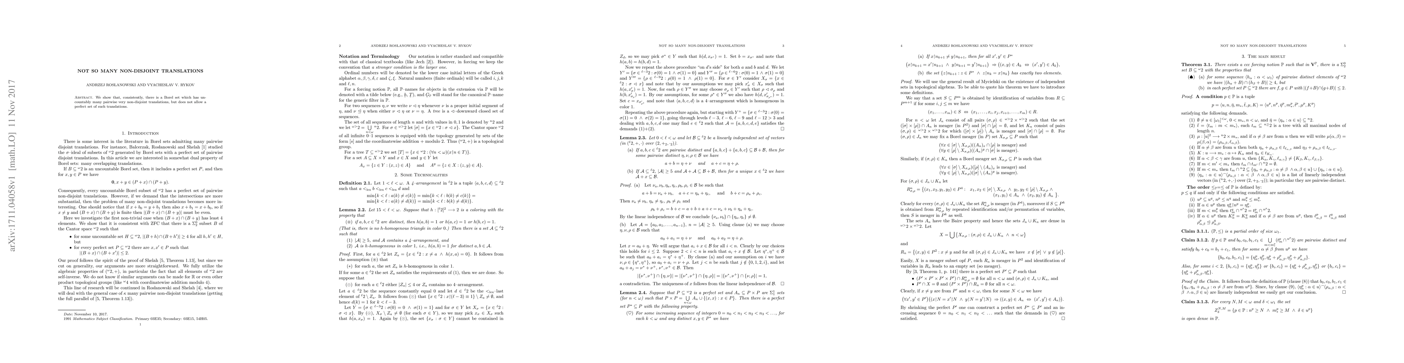 Researchers found a Borel set with uncountably many non-disjoint translations that cannot be perfectly translated, challenging the idea of perfect translation sets.