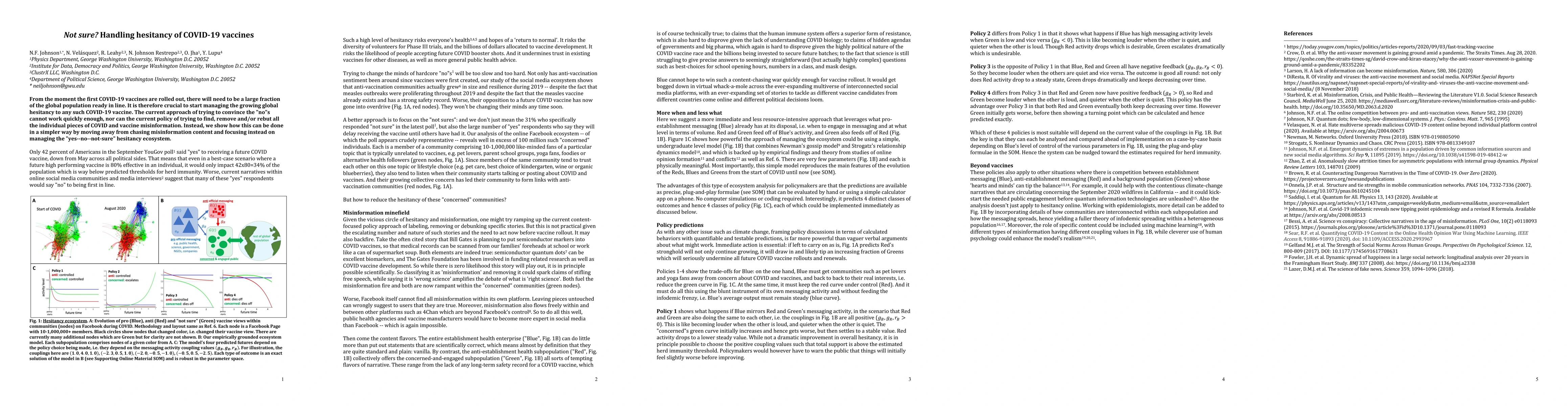 This paper argues that addressing COVID-19 vaccine hesitancy requires a shift from combating misinformation to managing the "yes-no-not-sure" hesitancy ecosystem. Traditional methods of persuasion and misinformation rebuttal are deemed insufficient for rapid vaccine uptake.