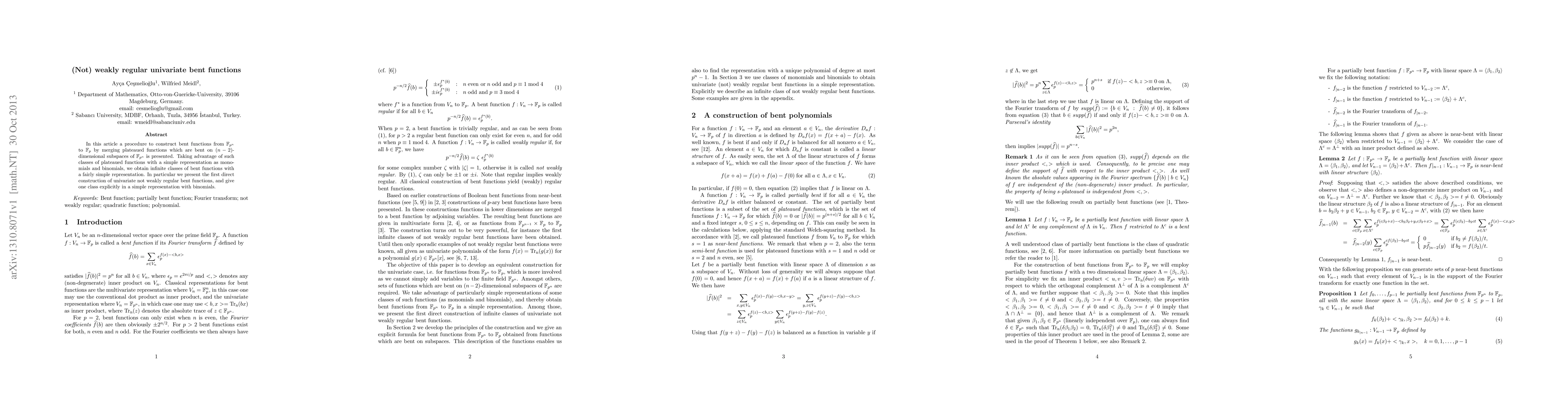 This paper presents a method to construct bent functions from $\F_{p^n}$ to $\F_p$ by merging plateaued functions, specifically focusing on univariate not weakly regular bent functions. It introduces an explicit class of such functions represented by binomials.