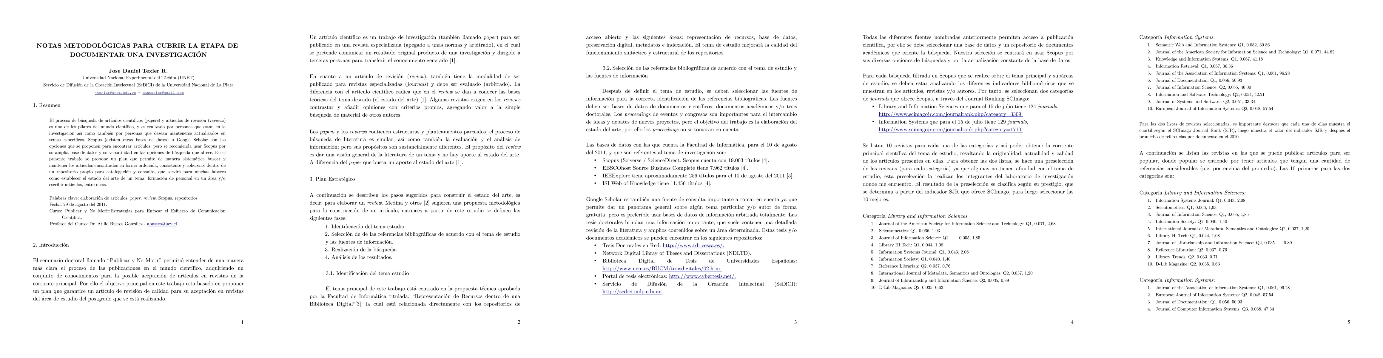 The search process of scientific articles (papers) and review articles (reviews) is one of the pillars of the scientific world, and is performed by people in the research as well as for people who want to keep abreast specific topics. Scopus (there are other databases) or Google Scholar are proposed options to find articles, but is recommended by Scopus its extensive database and its versatility in the search options it offers. This paper proposes is a plan that allows a systematic search and keep the items in an orderly, consistent and coherent within own repository for cataloging and consultation, which will serve for many tasks to establish the state of the art of a topic, staff training in an area and/or writing articles, among others.