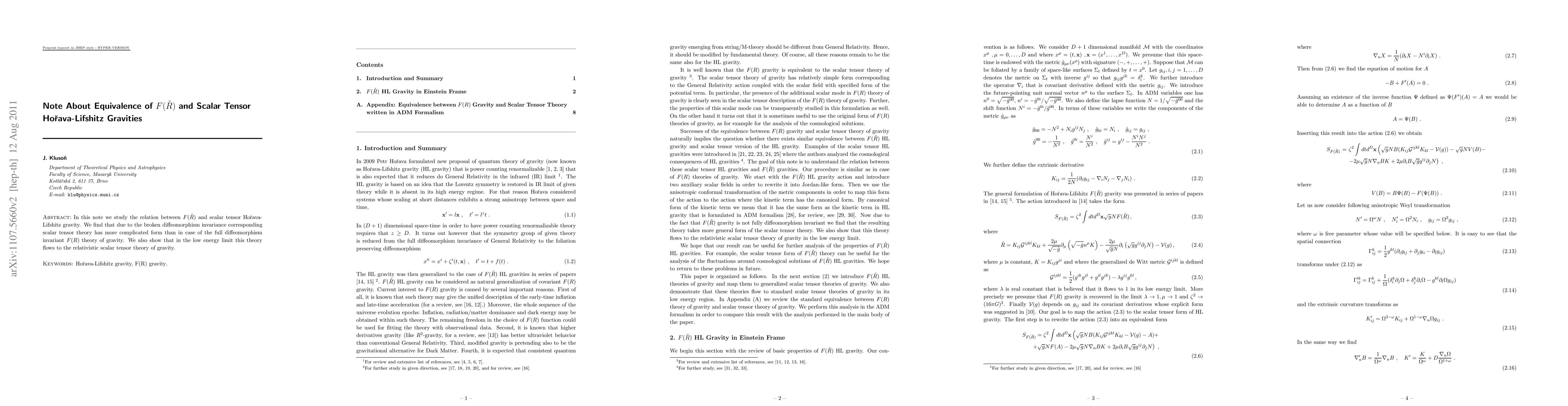 In this note we study the relation between F(R) and scalar tensor Horava-Lifshitz gravity. We find that due to the broken diffeomorphism invariance corresponding scalar tensor theory has more complicated form than in case of the full diffeomorphism invariant F(R) theory of gravity. We also show that in the low energy limit this theory flows to the relativistic scalar tensor theory of gravity.