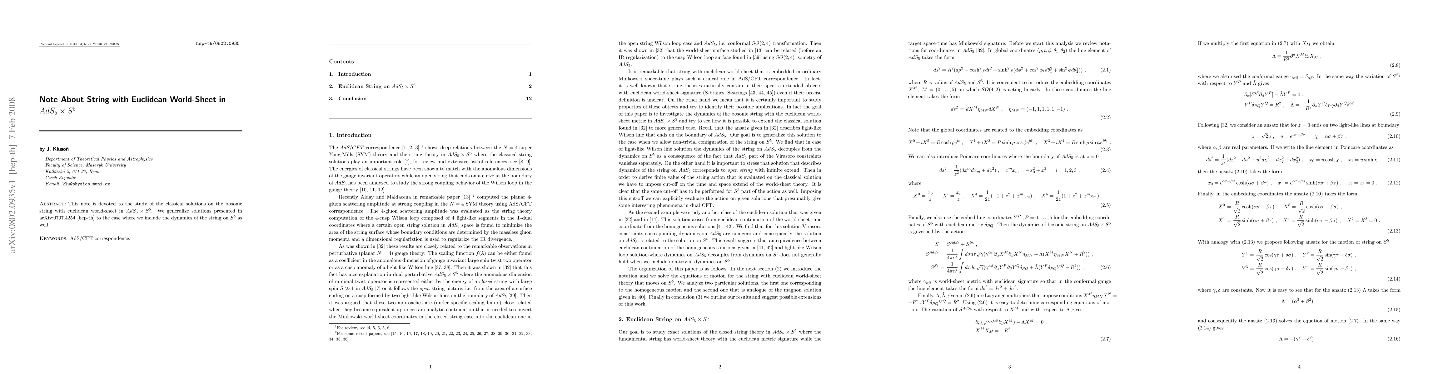 This note is devoted to the study of the classical solutions on the bosonic string with euclidean world-sheet in AdS(5)xS(5). We generalize solutions presented in arXiv:0707.4254 [hep-th] to the case where we include the dynamics of the string on S(5) as well.
