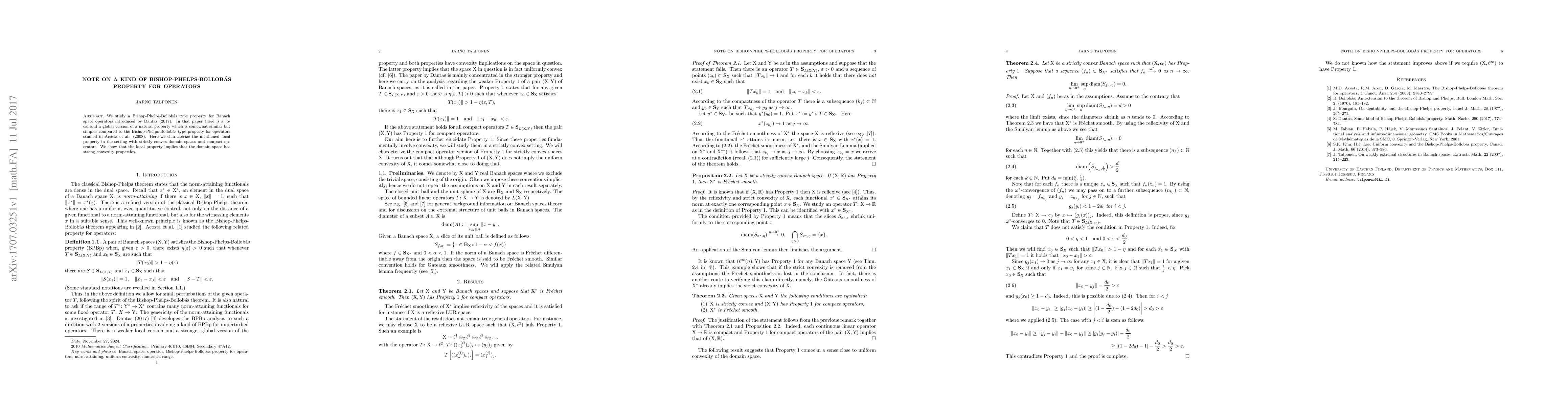 We study a Bishop-Phelps-Bollob\'as type property for Banach space operators introduced by Dantas (2017). In that paper there is a local and a global version of a natural property which is somewhat similar but simpler compared to the Bishop-Phelps-Bollob\'as type property for operators studied in Acosta et al. (2008). Here we characterize the mentioned local property in the setting with strictly convex domain spaces and compact operators. We show that the local property implies that the domain space has strong convexity properties.