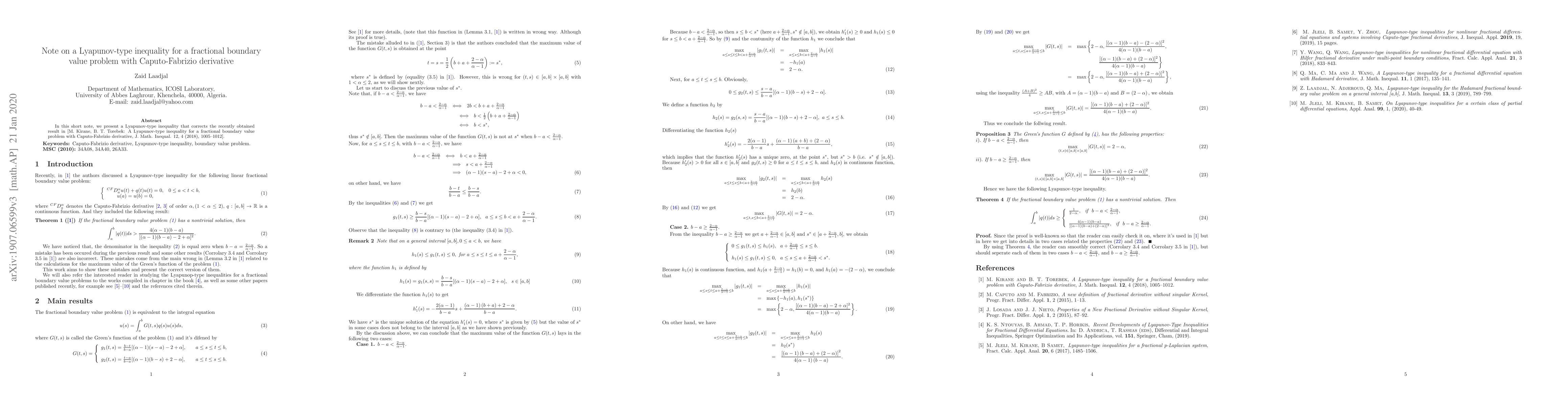 Summary: This paper corrects a previously established Lyapunov-type inequality for a fractional boundary value problem involving the Caputo-Fabrizio derivative, providing a more accurate result. The correction addresses an oversight in the earlier work by Kirane and Torebek.