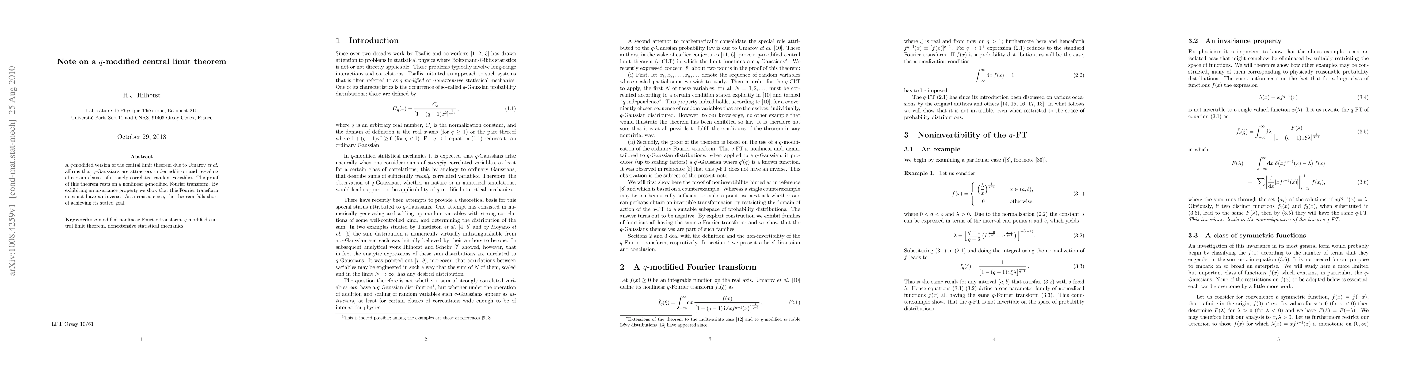 This paper discusses a q-modified central limit theorem, showing that q-Gaussians are attractors for certain correlated random variables. However, the proof reveals an invariance property that prevents the q-modified Fourier transform from having an inverse, thus undermining the theorem's intended outcome.