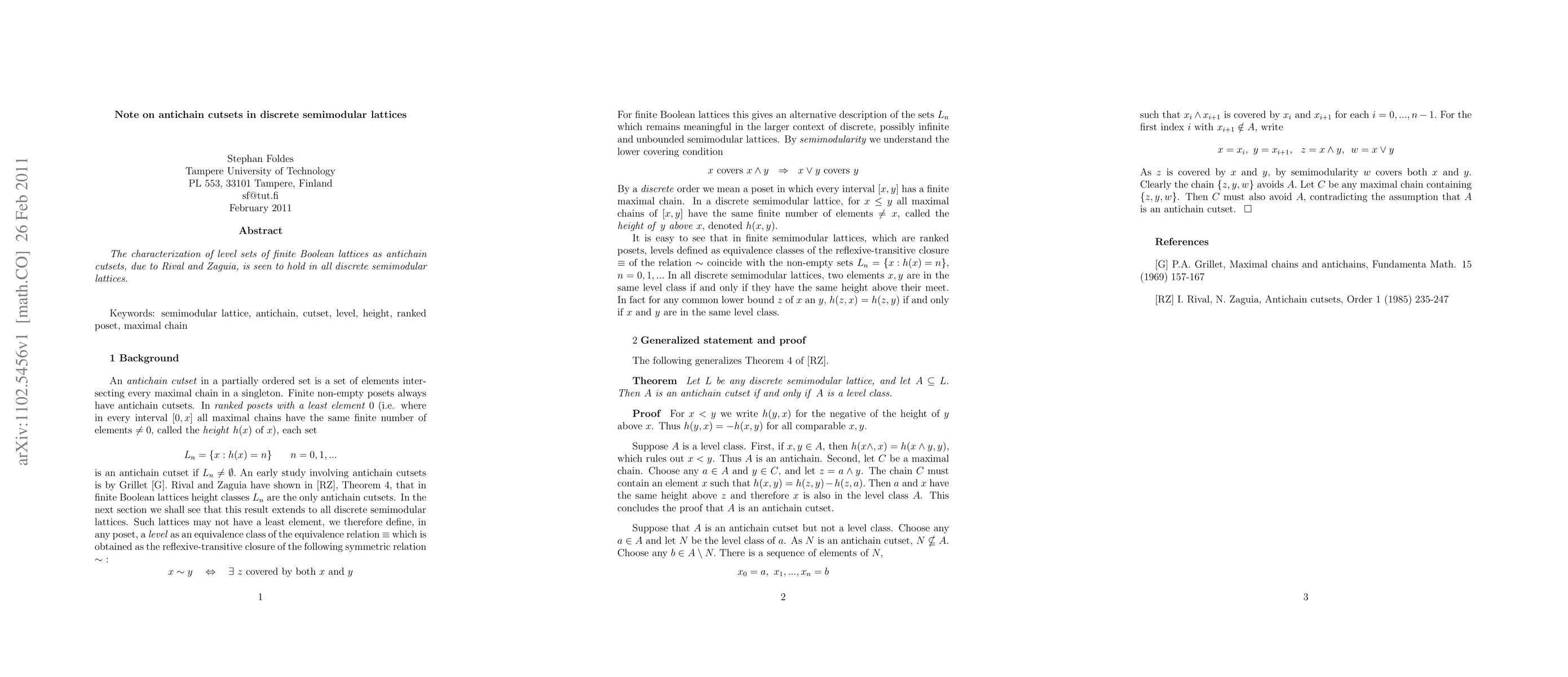A recent study confirms that level sets of finite Boolean lattices can be represented as antichain cutsets in all discrete semimodular lattices, extending previous work on a specific type of lattice.